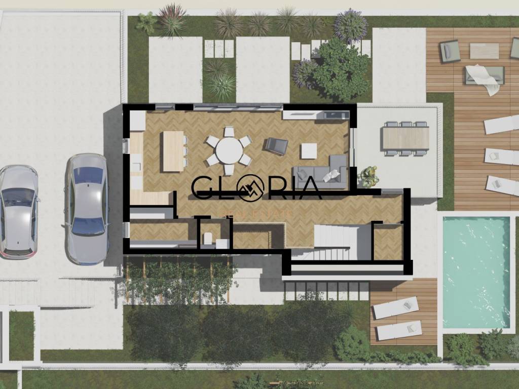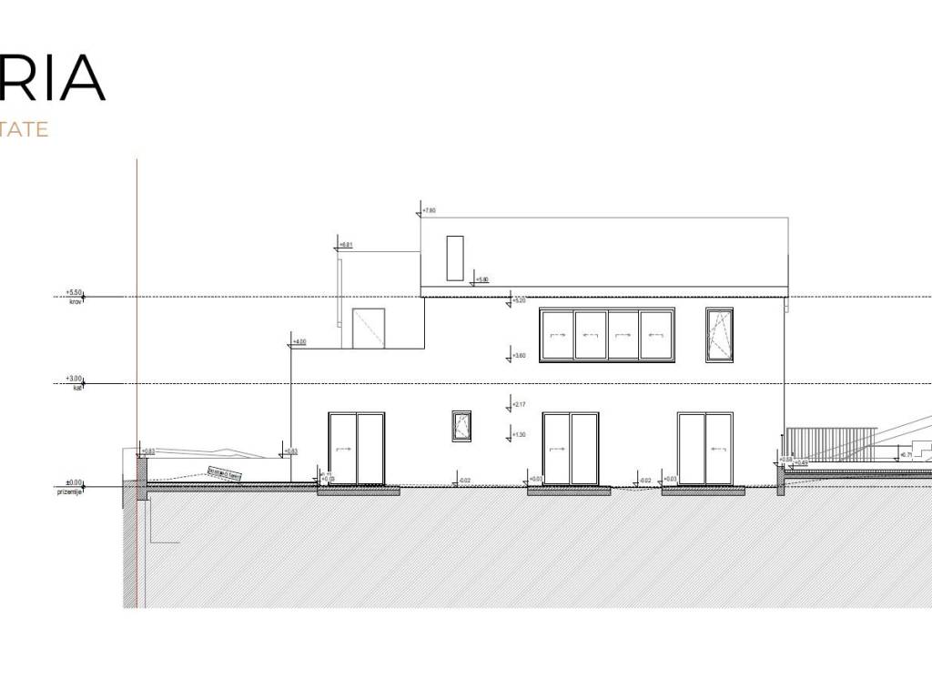 Dodatno: mogućnost kupnje izgrađenog objekta u fazi dovršenosti "visoki roh-bau", neto površine cca 150 m2 i bazena površine 20 m2, uz pripadajuće zemljište, po cijeni od 500.000 EUR (bez PDV-a).