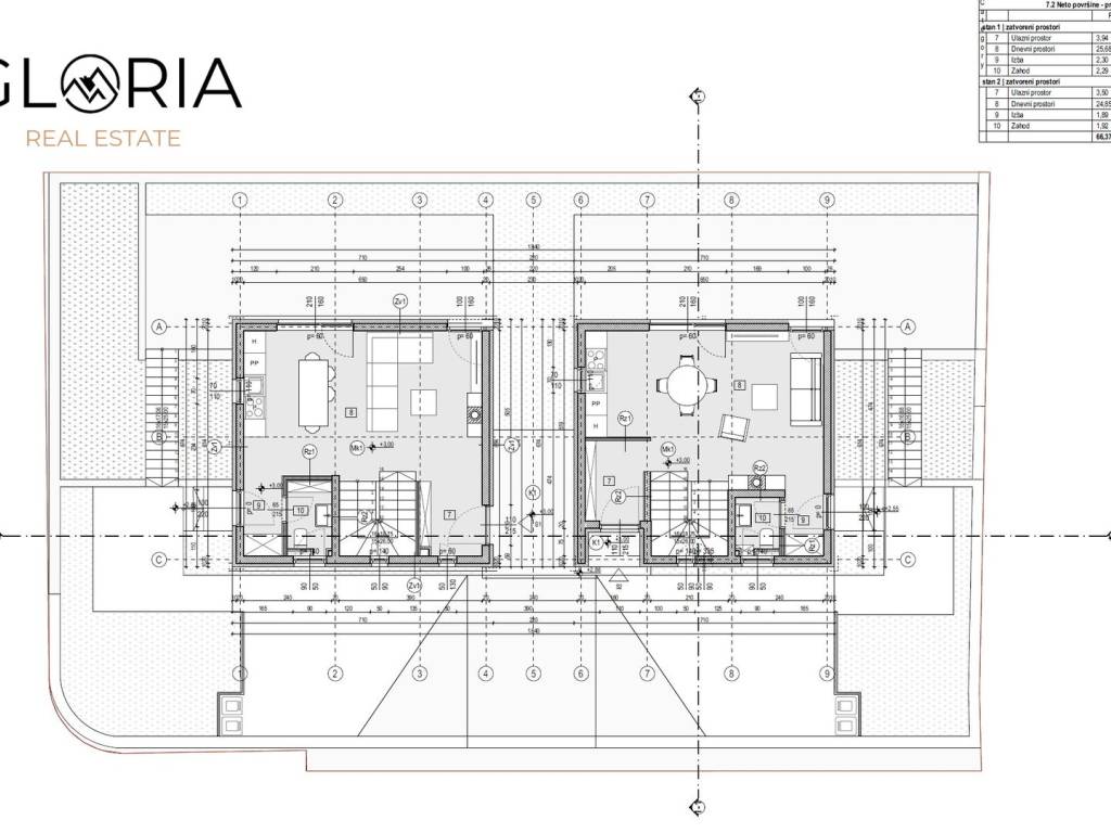 Sveukupno STAN 1 + STAN 2: 147,08 m2