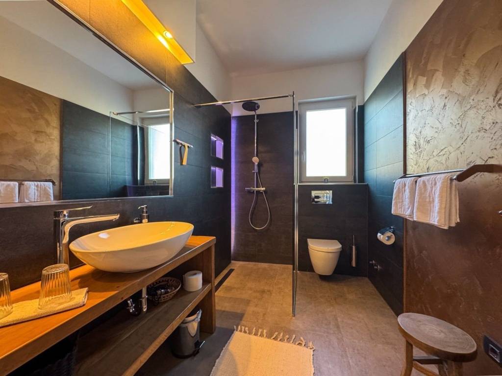 Luxury Villa with Sea View – Near LabinFor sale is a beautiful luxury villa located in a peaceful area near Labin, just 2 km from the sea. This elegant and modern property sits on a plot of 926 m², with a total living area of approximately 240 m². The villa is spread over three levels – basement, ground floor, and first floor – and is designed with an emphasis on comfort, functionality, and a luxurious lifestyle.The interior comprises 4 spacious bedrooms and 4 modern bathrooms, while the open-plan living room with kitchen and dining area is filled with natural light. Large glass walls seamlessly connect the interior with the outdoor space, creating a perfect harmony between indoor and outdoor living.The villa is newly renovated and equipped with top-quality heating and cooling systems: underfloor heating, fireplace, and air conditioning.The outdoor area offers a variety of amenities: a spacious terrace ideal for relaxation and gatherings, a balcony with views of nature and the sea, a landscaped garden with the possibility of building a pool, private parking, a summer kitchen, and a storage room.This property perfectly combines luxury, privacy, and functionality, making it ideal for both family living and tourist rental. Located close to all essential amenities, it offers peace, comfort, and an authentic Istrian atmosphere.
