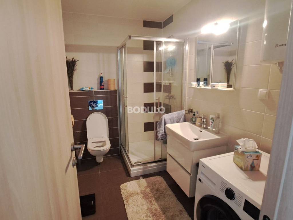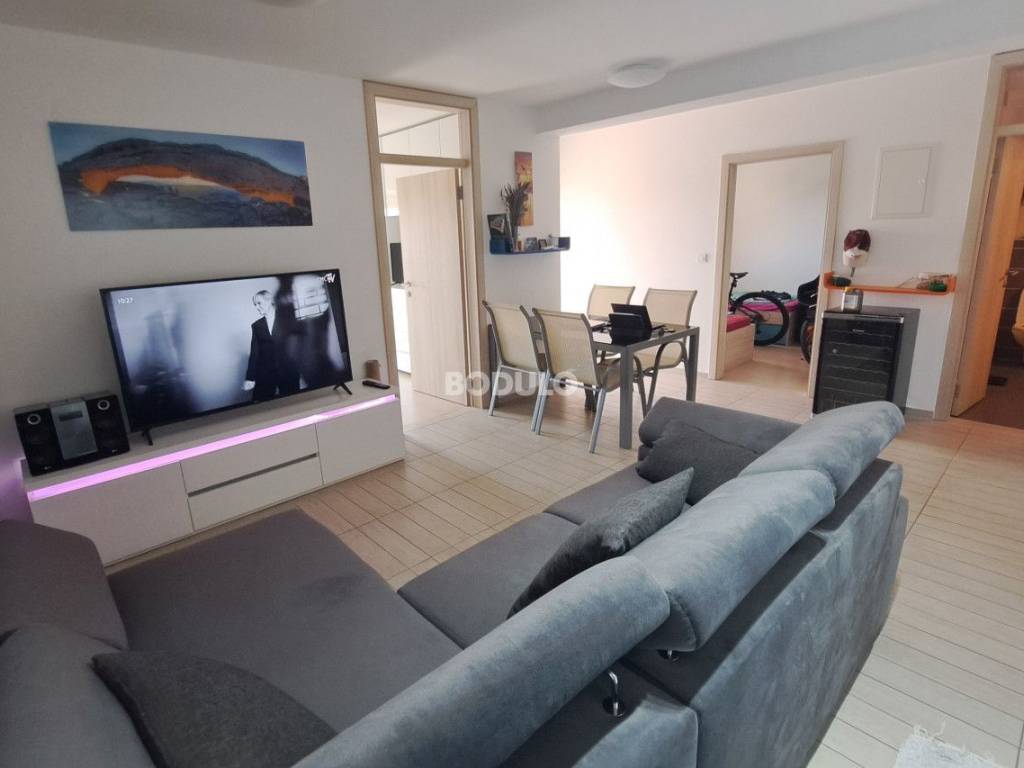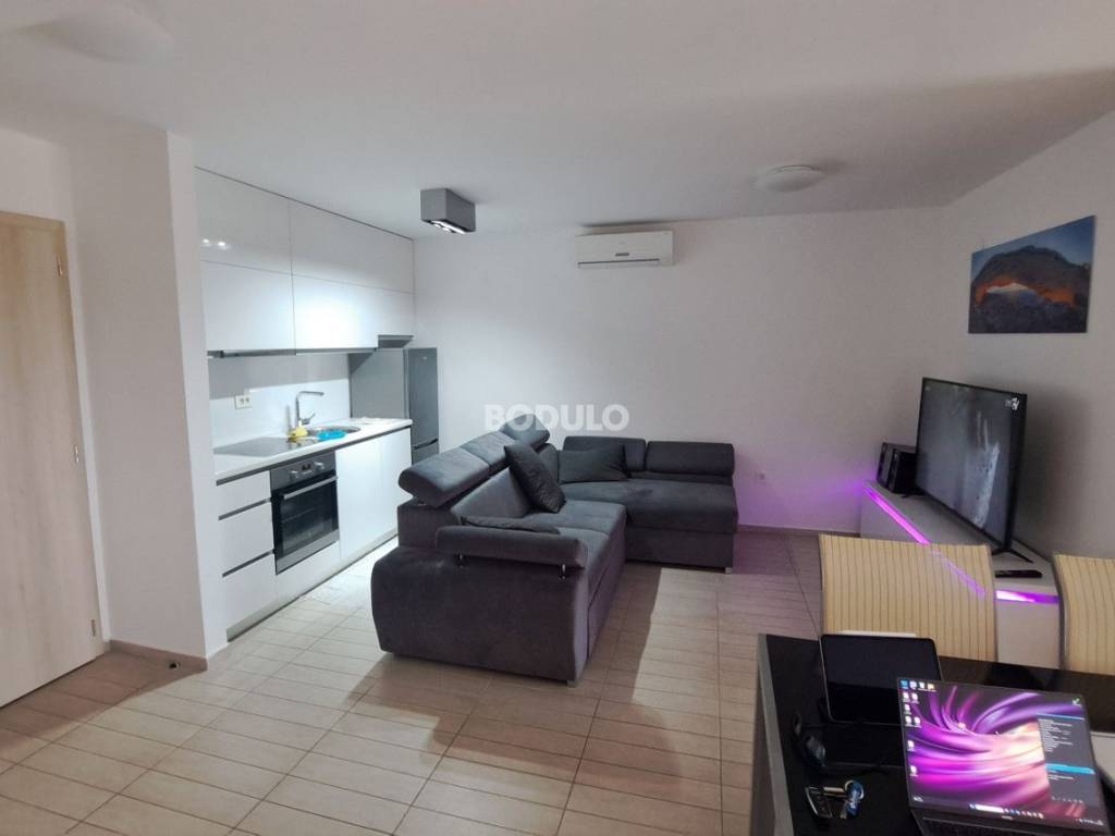 The apartment includes a private barbecue area and a parking space, bringing the total usable area, including additional amenities, to 58.4 m². It consists of two bedrooms, a beautifully designed bathroom, a spacious living room connected to the kitchen, and a terrace offering a lovely view of the sea and the surrounding neighborhood, where most houses and holiday homes belong to local residents. The space is carefully designed and equipped with modern furniture, creating the perfect balance between elegance and relaxation.   The apartment is being sold fully furnished and is move-in ready.   The building, constructed in 2015, is well maintained and surrounded by Mediterranean gardens, greenery, and flowers. Nearby are well-kept beaches with crystal-clear sea, walking paths, restaurants serving local specialties, and all the amenities needed for a comfortable lifestyle or a carefree holiday.