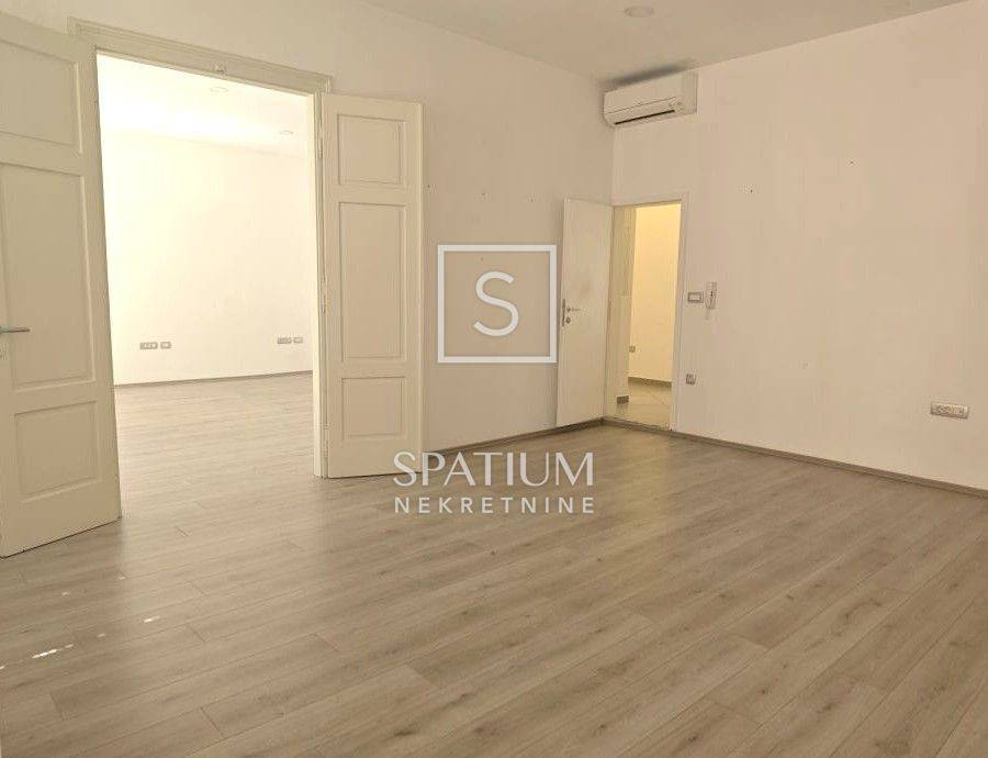 Prostor je površine 90m2 i pripada mu i manje spremište u podrumu zgrade (pogodno npr. za arhivu).