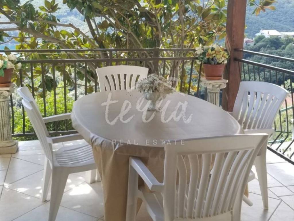 The terrace offers a beautiful view of the sea.