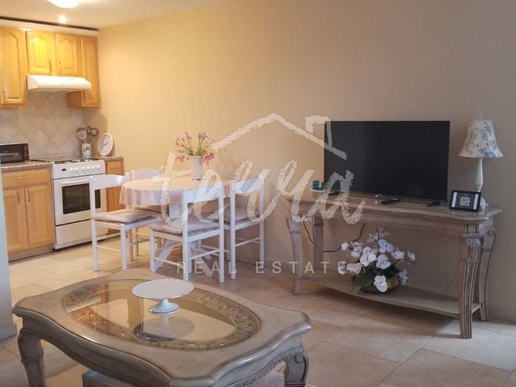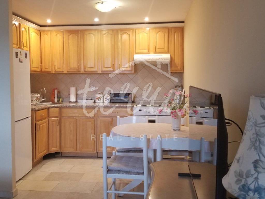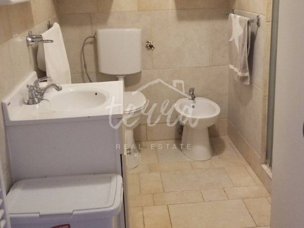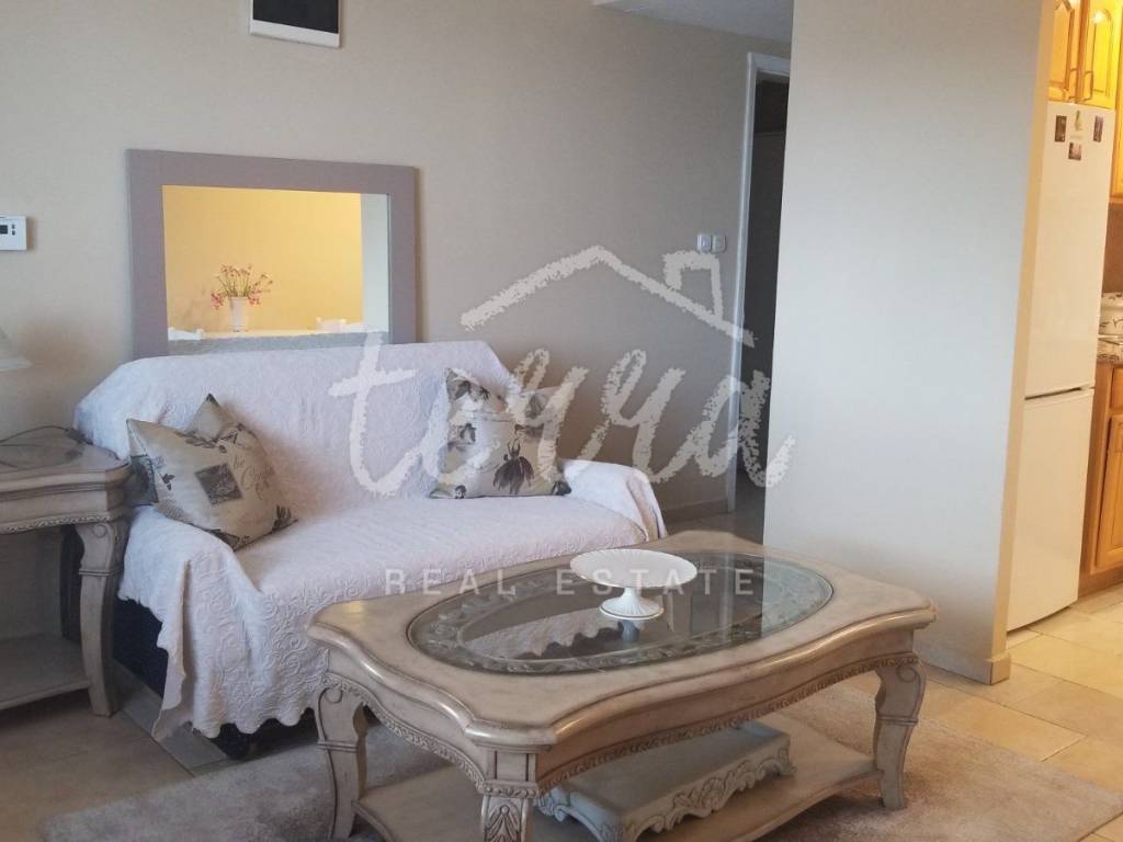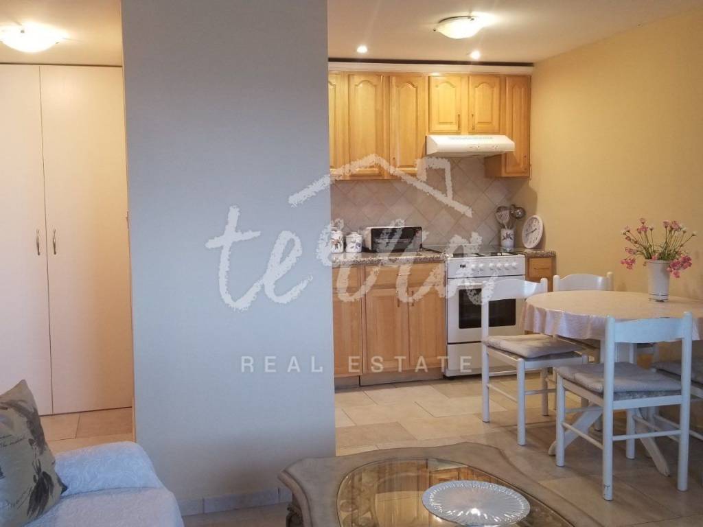 With a total area of 70 square meters, it consists of a kitchen with dining area, living room, two bedrooms, bathroom and storage room where the laundry is located.