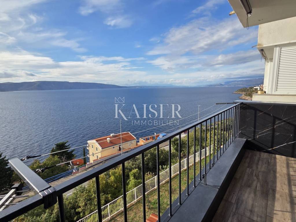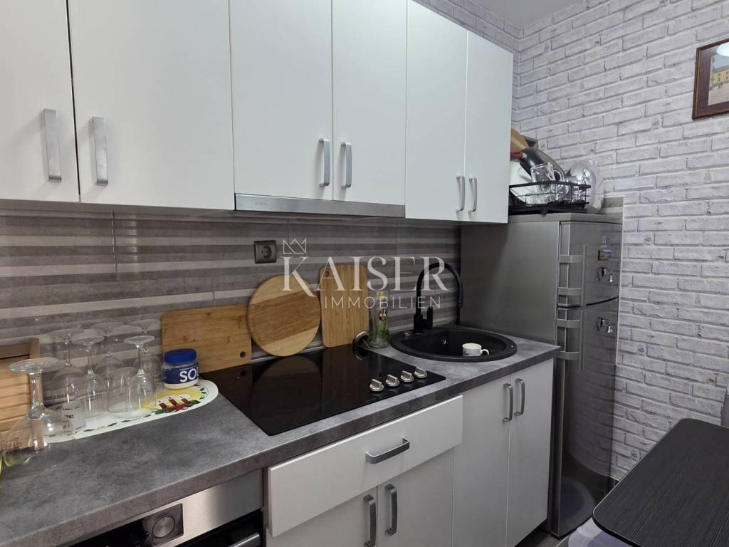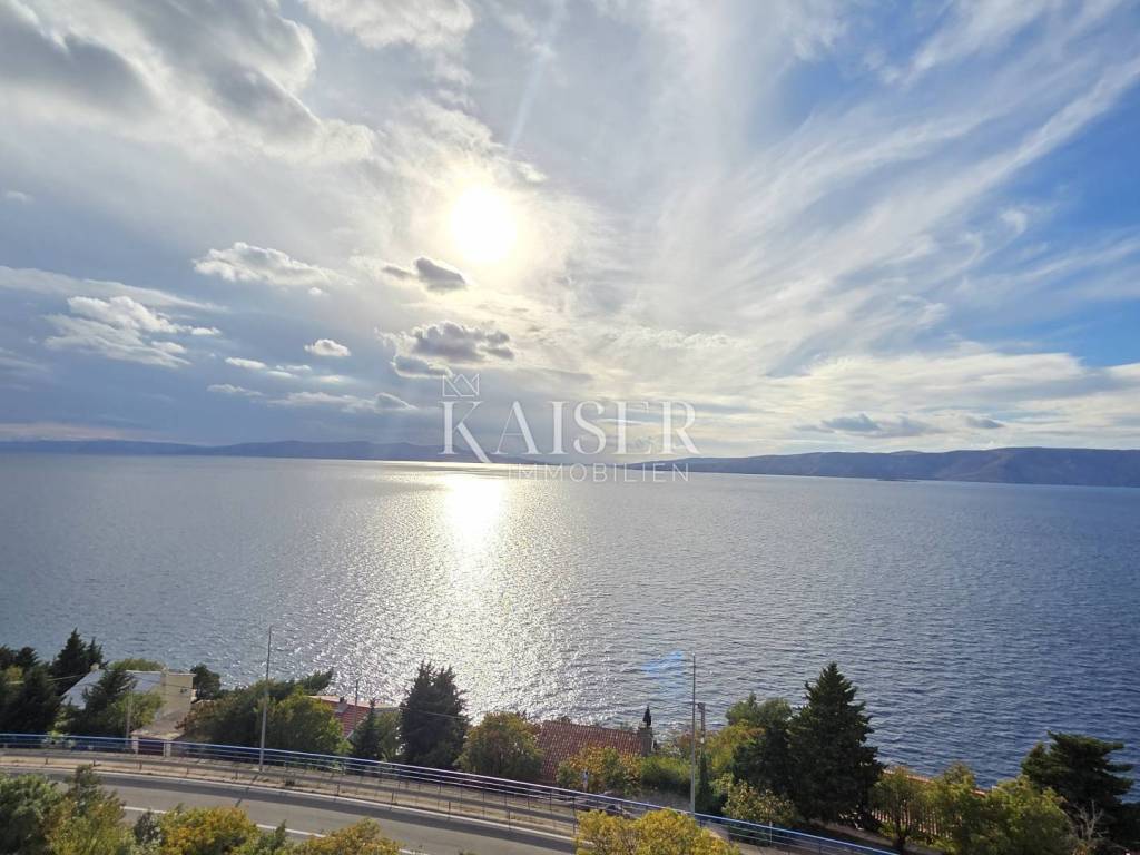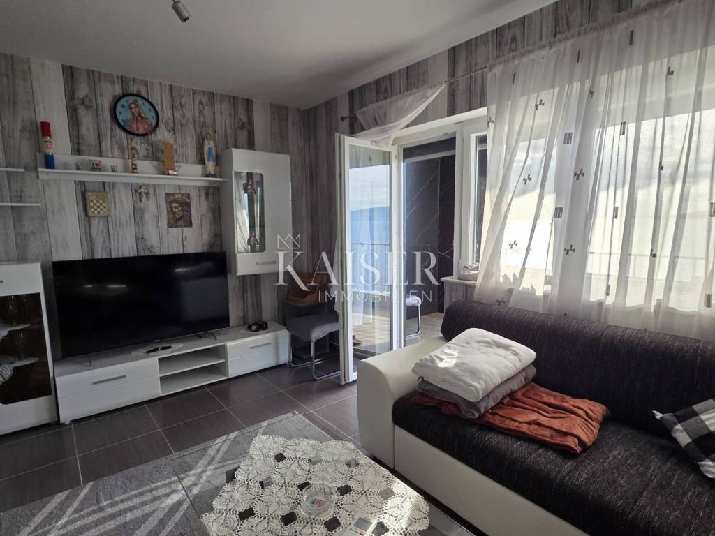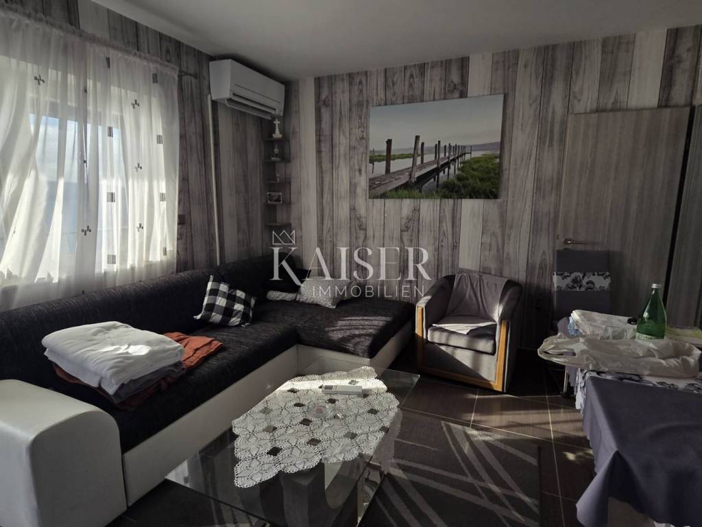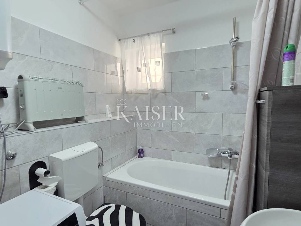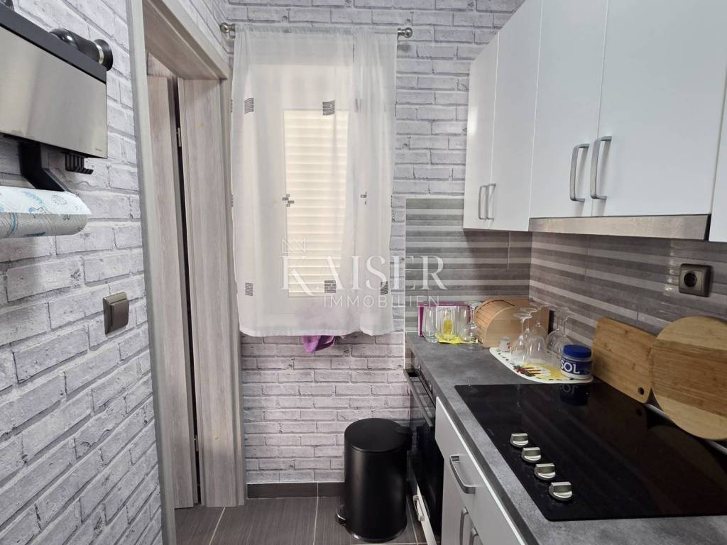 Kaiser Immobilien presents a beautiful studio apartment with a beautiful panoramic view of the sea in Senj. This studio apartment consists of 35m2 and consists of a hallway, bathroom, two storage rooms, one of which is used as a wardrobe, kitchen, living room, and a loggia. The apartment is located on the ground floor of the building. The studio apartment is newly renovated and has new furniture, new ceramics, air conditioning in the living room, while the living room has a functional chimney and a pellet stove can be installed. The balcony offers an unobstructed panoramic view of the sea and islands, and there are stairs leading to the sea next to the building. For any questions, please contact the agent: Davor Piškulić davor@kaiser-immobilien.hr +00 385 95 583 8240 WhatsApp, Viber