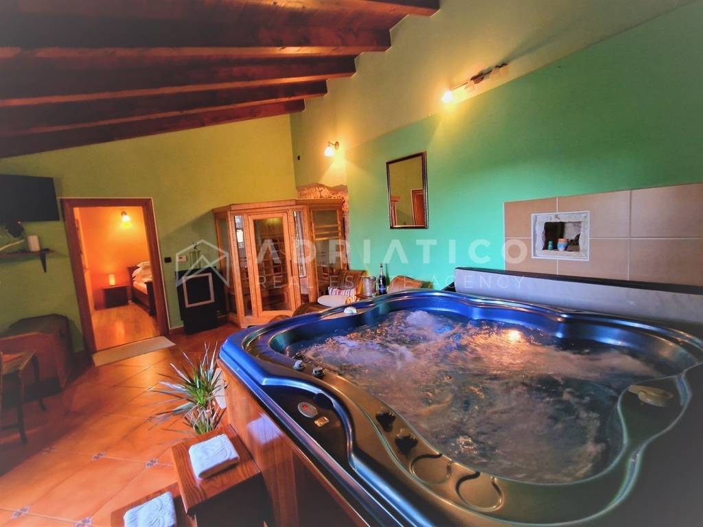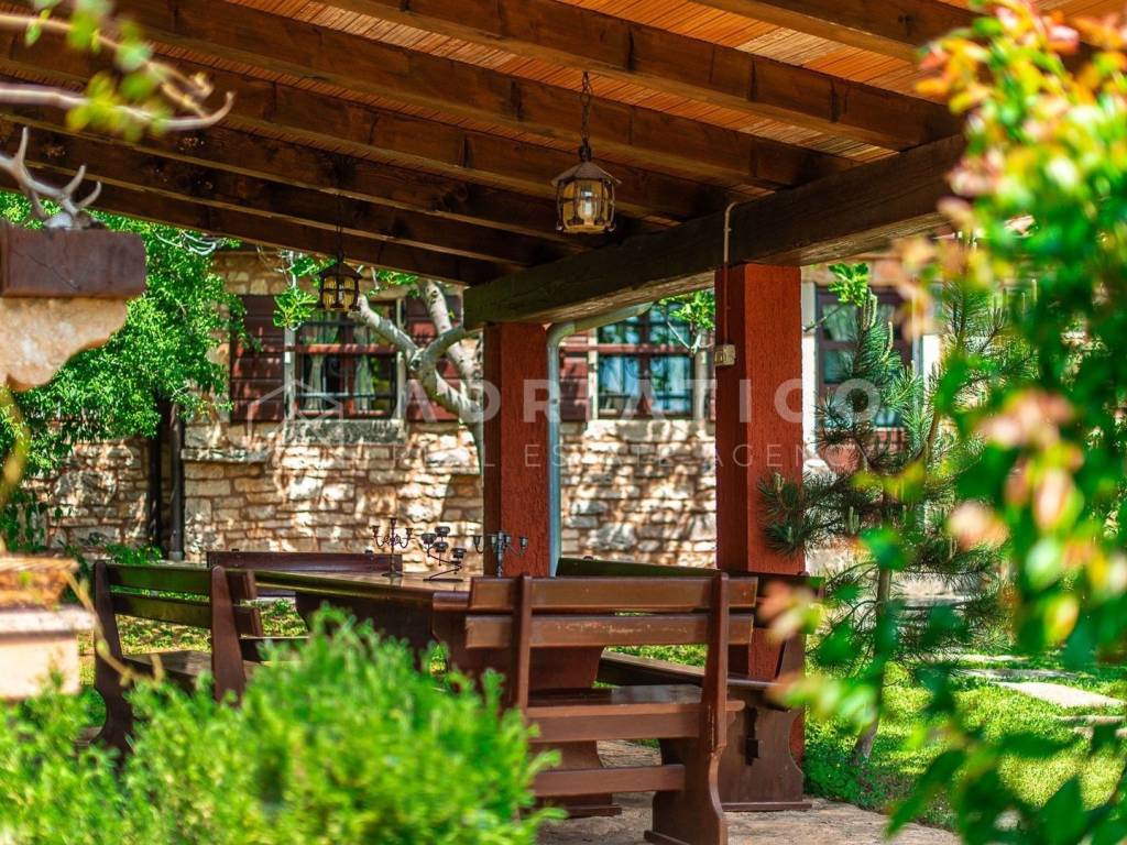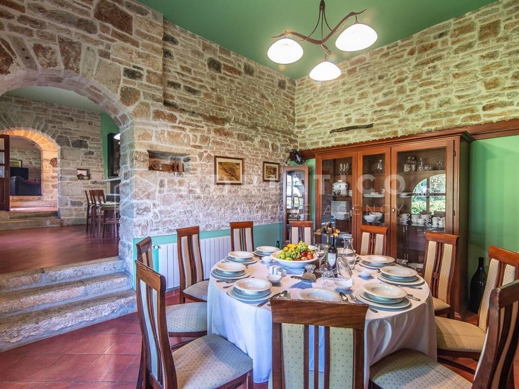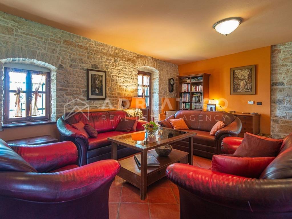 central gas heating throughout the house; air conditioners in each room; fireplace in the living room; sauna and whirlpool; room for socializing (billiards and table tennis); satellite TV (home cinema); swimming pool of 50m2 with sunbathing area; covered summer kitchen with fireplace; contents for children; green garden decorated with Mediterranean plants; cistern in the back of the house; additional building for business purposes next to the main part of the house; the property is located in an area known for its wine trails, and not far from the property there is also a riding school; 25 km from Rovinj and Poreč, 30 km from Pula and the airport.