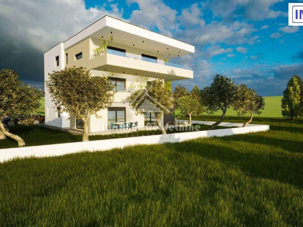 In Tribunj, a small picturesque town in the western part of the Šibenik-Knin County, at a distance of 750 meters from the city center, i.e. 500 meters from the beach, a new three-room apartment is for sale on the first floor of a smaller residential building with a total of three apartments. The building will be built on a plot of land with an area of ​​692 m/2. We offer an S2 apartment with a net area of ​​109.22 m/2, consisting of: an entrance with a corridor of 7.84 m/2, a living room with an attached kitchen and a dining room of 28.11 m/2 with access to a covered terrace of 10.81 m/2, three bedrooms, one of which is a master bedroom with an area of ​​16.38 m/2 with its own bathroom, while the other two rooms have an area of ​​12.30 m/2, or 10.95 m/2. From the master bedroom there is access to a covered terrace of 12.01 m/2. In addition to the above, the apartment also has a shared bathroom of 5.39 m/2. The apartment also has a storage room on the ground floor of 2.86 m/2. This apartment has two parking spaces, each of which has an area of ​​12.50 m/2, and the specialty of this property is the garden of 28.87 m/2. The building will be built according to the latest construction standards, and quality materials and equipment will be used, such as: quality internal carpentry with hidden hinges, roll execution of external carpentry in anthracite color, electric shutter lifters, glass fences on the terraces, quality floor coverings, etc. All apartments have air conditioning in all rooms, telephone and Internet connections, underfloor heating in the bathrooms and the living room, intercom with video display, etc. The building will be located in an excellent location, in a quiet urban area with excellent access and near most relevant facilities, and in addition to personal use, there is also great potential for touristic exploitation. The building permit has been issued, construction has been started, and the project will be completed by the end of 2025. Payment dynamics in agreement with the investor.