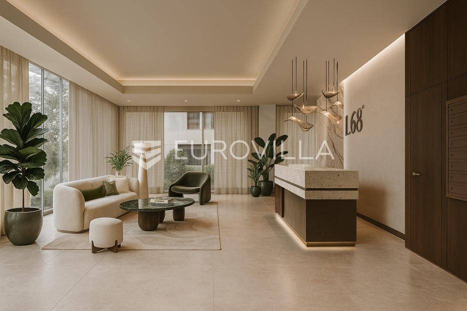 Split, Lora, moderan i elegantan stan s ukupne neto korisne površine 89.06 m2, položen na prvom katu jednog od najprestižnijih novih projekata u Splitu - Lora 68°.Stan se sastoji od prostranog dnevnog boravka s velikim staklenim stijenama i izlazom na lođu, kuhinje s blagovaonicom, tri spavaće sobe, kupaonice i dva wc-a. Visoki stropovi, otvoren tlocrt i vrhunski materijali stvaraju osjećaj prozračnosti, elegancije i topline doma.Oprema i standardi• Podno grijanje i multi-split sustav hlađenja