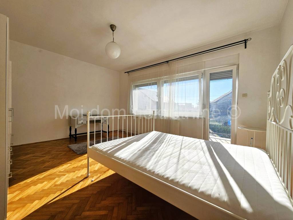 Prodaje se dvojna kuća s okućnicom i garažom. Proteže se na tri etaže (prizemlje, 1.kat, potkrovlje), stambene površine od 108.81m2, s potkrovljem podne površine cca 50m2. Potkrovlje je moguće urediti kao dodatan spavaći prostor (dvije spavaće sobe). Površina okućnice iznosi 168m2, na kojoj se nalazi garaža i parking za 3 automobila.