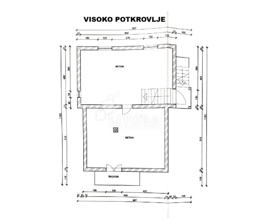 In a quiet part of Benkovac, situated on a gentle elevation with a stunning view of the countryside and the town, lies this detached family house spread over two floors, with a total living area of 146 m², set on a spacious plot of 750 m². The yard extends between two access roads, providing easy entry and additional privacy. On the ground floor there is a fully furnished and move-in ready apartment consisting of: an entrance hall, storage room, bathroom, two bedrooms, a living room with dining area and kitchen, and access to a terrace facing south and east. The apartment is fully equipped, including a wood-burning stove, and is ready for immediate occupancy. The house features a built-in chimney, allowing for solid-fuel heating in the attic as well, should it be converted into a separate unit. The high attic can be arranged as a two-bedroom apartment. It is currently in the shell construction stage, with installed exterior joinery, and has a separate outdoor entrance via an external staircase. The property is connected to public utilities – water supply, sewage, and electricity. The well-maintained garden with several olive trees offers enough space for the construction of a garage, swimming pool, barbecue area, or other outdoor amenities according to the new owner’s preferences. The distance to the town center of Benkovac is approximately 2.5 km, and nearby there is a children’s playground, a small grocery shop, and a primary school. Its peaceful setting, good accessibility, and natural surroundings make this property an ideal choice for family living or a quiet holiday retreat.