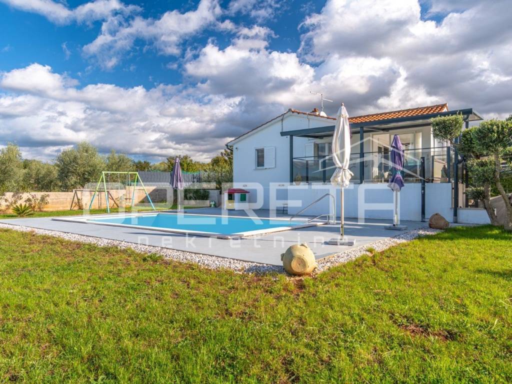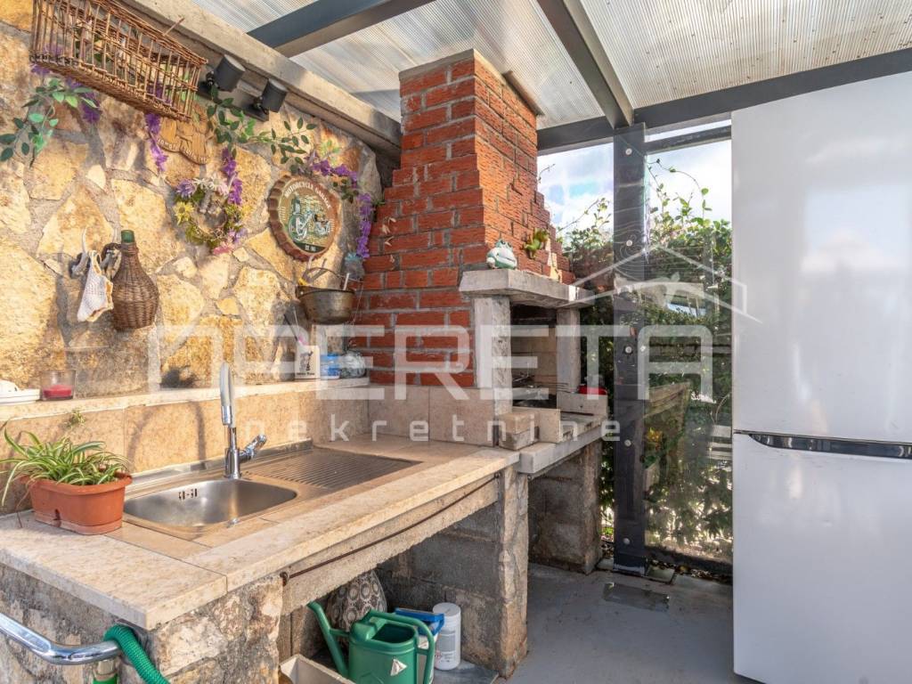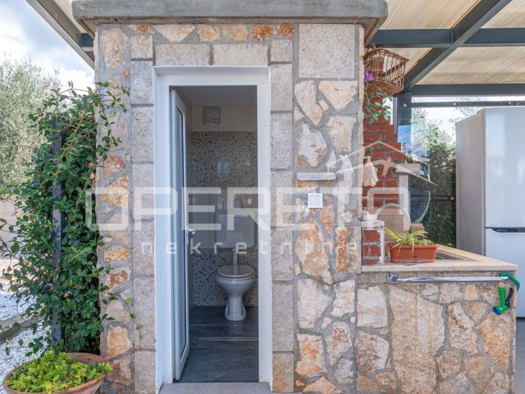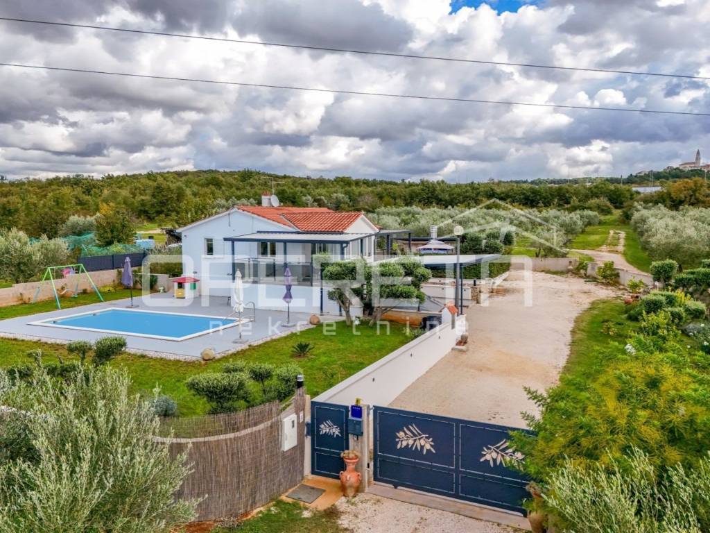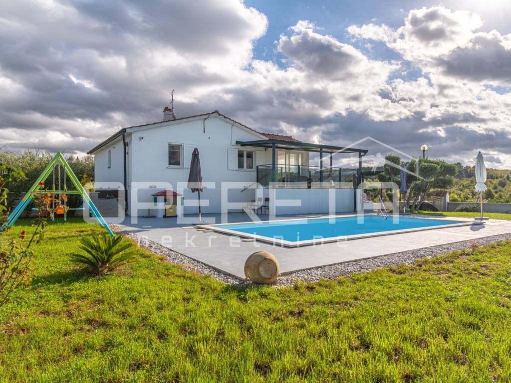 For sale is a charming, detached, and legalized house located in a quiet village, just 8 km from Poreč. This oasis of peace is situated in nature, surrounded by a spacious agricultural plot of 3 000 m2, with planted olive trees. The house, with a total area of 120 m2, consists of a raised ground floor and a basement. The raised ground floor offers a fully furnished and equipped two-bedroom apartment, adapted in 2021, which consists of a living room, kitchen with dining area, and two bathrooms. In the spacious basement, covering 40 m2, there is a possibility to arrange an additional apartment, as all the necessary installations are already prepared.
