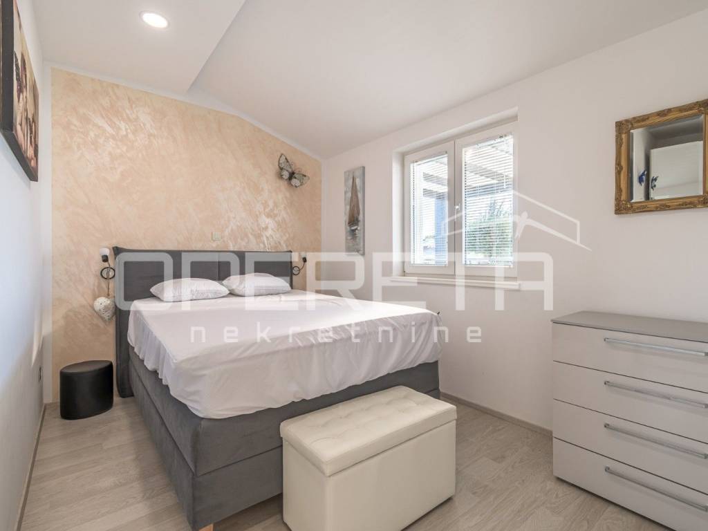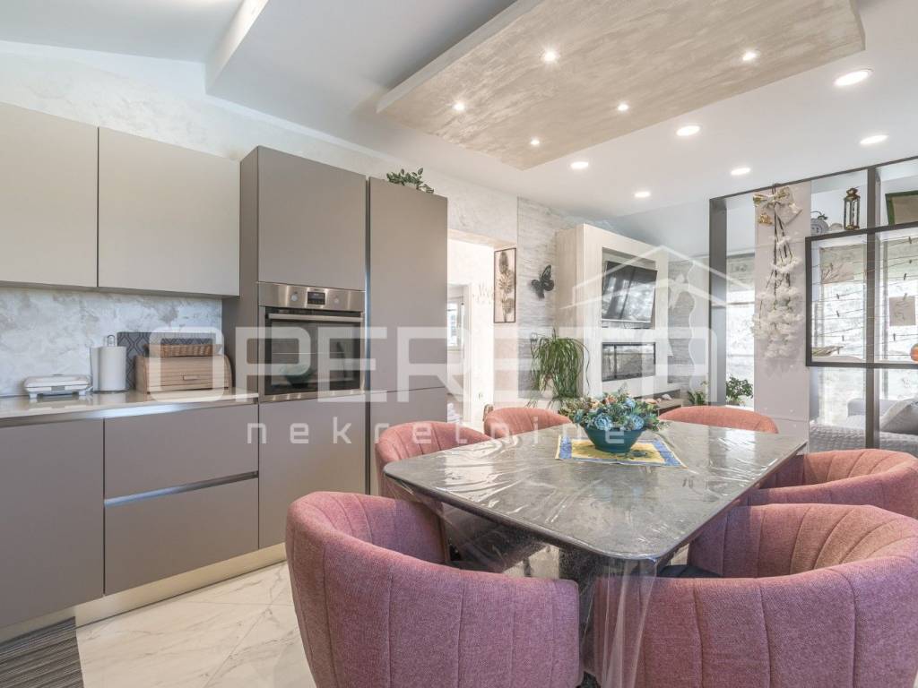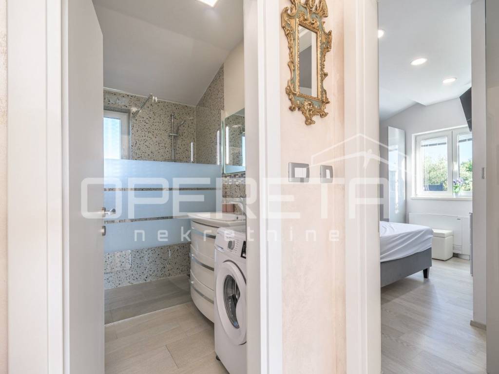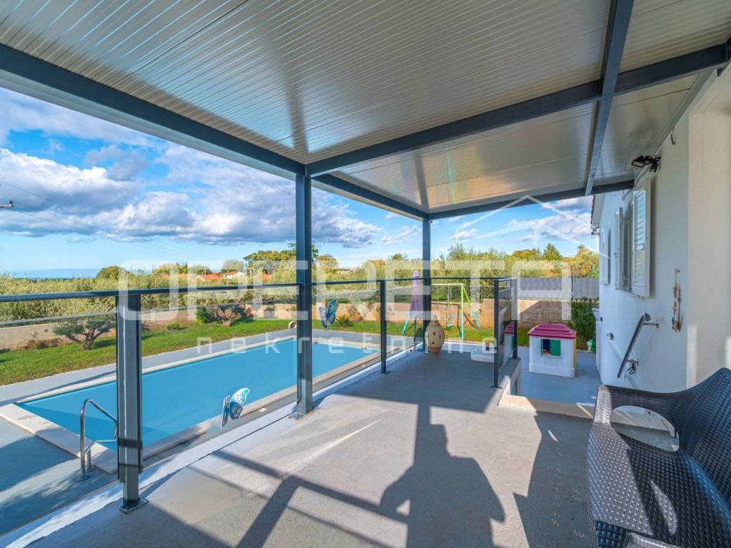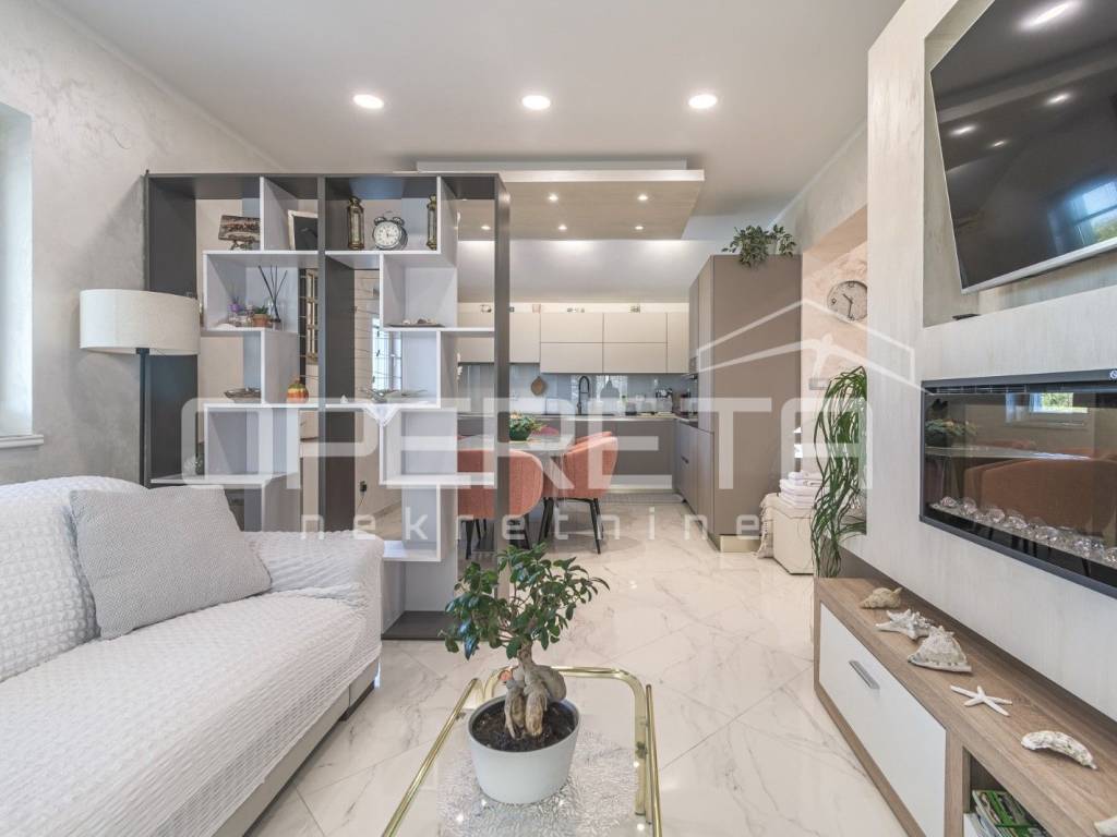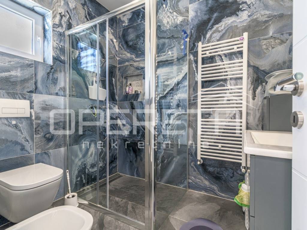 For sale is a charming, detached, and legalized house located in a quiet village, just 8 km from Poreč. This oasis of peace is situated in nature, surrounded by a spacious agricultural plot of 3 000 m2, with planted olive trees. The house, with a total area of 120 m2, consists of a raised ground floor and a basement. The raised ground floor offers a fully furnished and equipped two-bedroom apartment, adapted in 2021, which consists of a living room, kitchen with dining area, and two bathrooms. In the spacious basement, covering 40 m2, there is a possibility to arrange an additional apartment, as all the necessary installations are already prepared.