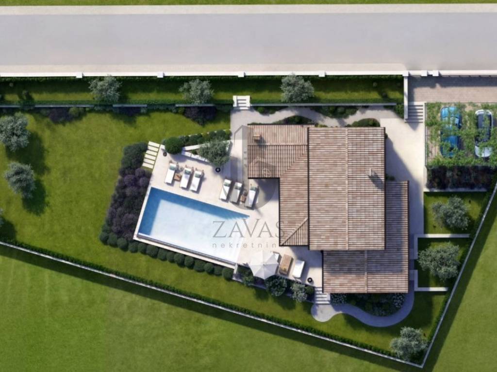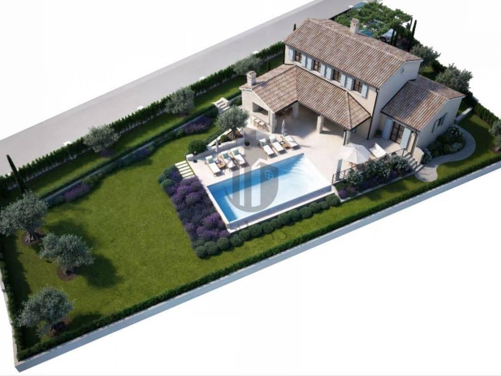 Na prodaju građevinsko zemljište 964 m u Svetom Lovreču, Istra, s dozvolom i projektom za vilu 169 m s bazenom.