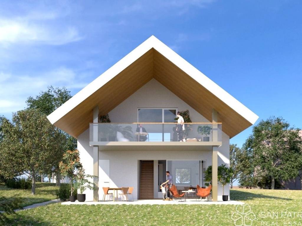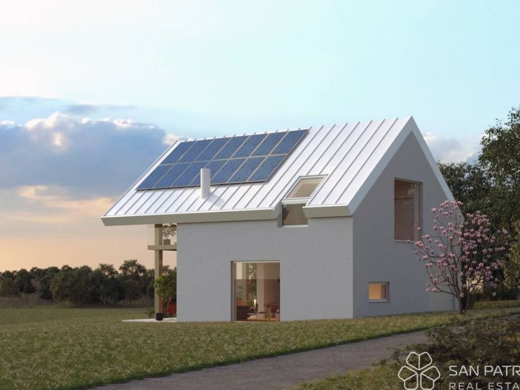 Projekt obuhvaća samostojeću samoodrživu nisko energetsku kuću na dvije etaže sa solarnom elektranom na krovu, grijanje putem dizalice topline uz energetski razred A+. U prizemlju kuće nalazi se garaža, ulazni hodnik, WC, blagovaona i dnevnik boravak s kuhinjom, terasa (30 m2) te stepenice s kojima se dolazi na drugu etažu. Tu se nalaze hodnik, dvije spavaće sobe, WC, wellness zona i natkrivena terasa (18 m2).