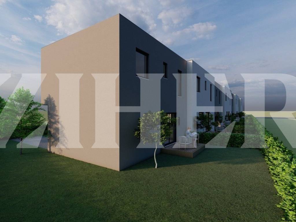 Projekt osam kuća u nizu, svaka sa dva parkirna mjesta i vrtom, početak gradnje 3/2026 g.