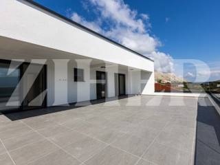 Iz dnevnog boravka se izlazi na veliku terasu površine 75 m2 s prekrasnim pogledom na more.