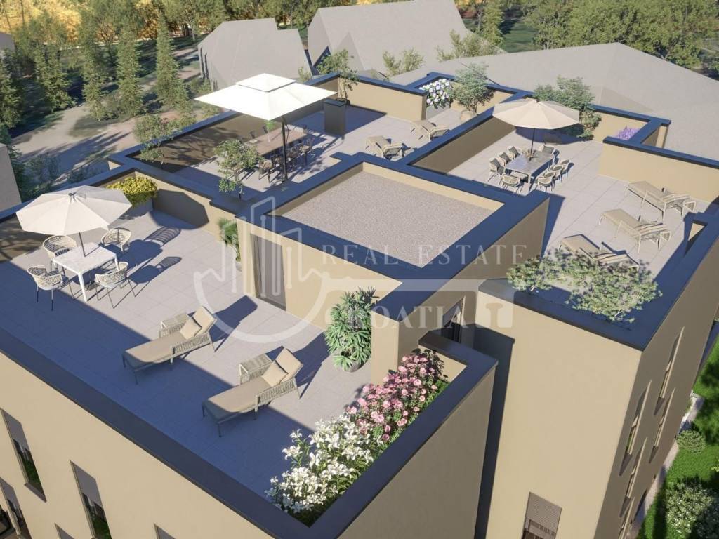 Privatni vrtovi prizemni stanovi s izlazom u vlastiti vrt Krovne terase stanovi na zadnjem katu s prostranim terasama za uživanje u panoramskom pogledu Pametni sustavi audio-video portafoni s automatskom rasvjetom i električnim bravama Dizalo povezuje garažu s drugim katom za maksimalnu udobnost