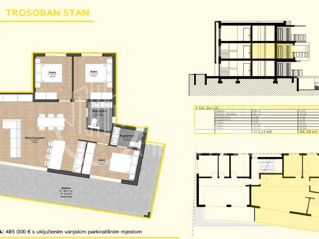 Projekt uključuje i vlastito parkirno mjesto za svaki stan koje je uključeno u cijenu.