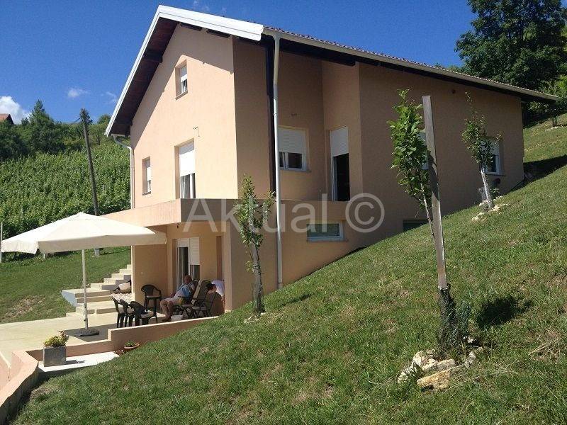Na prodaju kvalitetno građena obiteljska kuća tlocrtne površine 167 m2 koja se sastoji od 3 etaže (suteren,visoko prizemlje i potkrovlje). Površina parcele je 1.610 m2. Uz kuću su parkirališna mjesta za desetak automobila.
