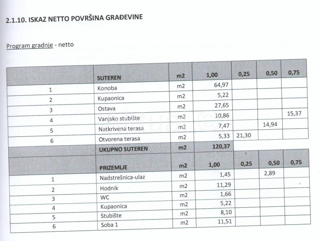 SUTEREN ima netto površinu 120.37 m2 a sastoji se od konobe, kupaonice, ostave, stubišta, natkrivene i otvorene terase.