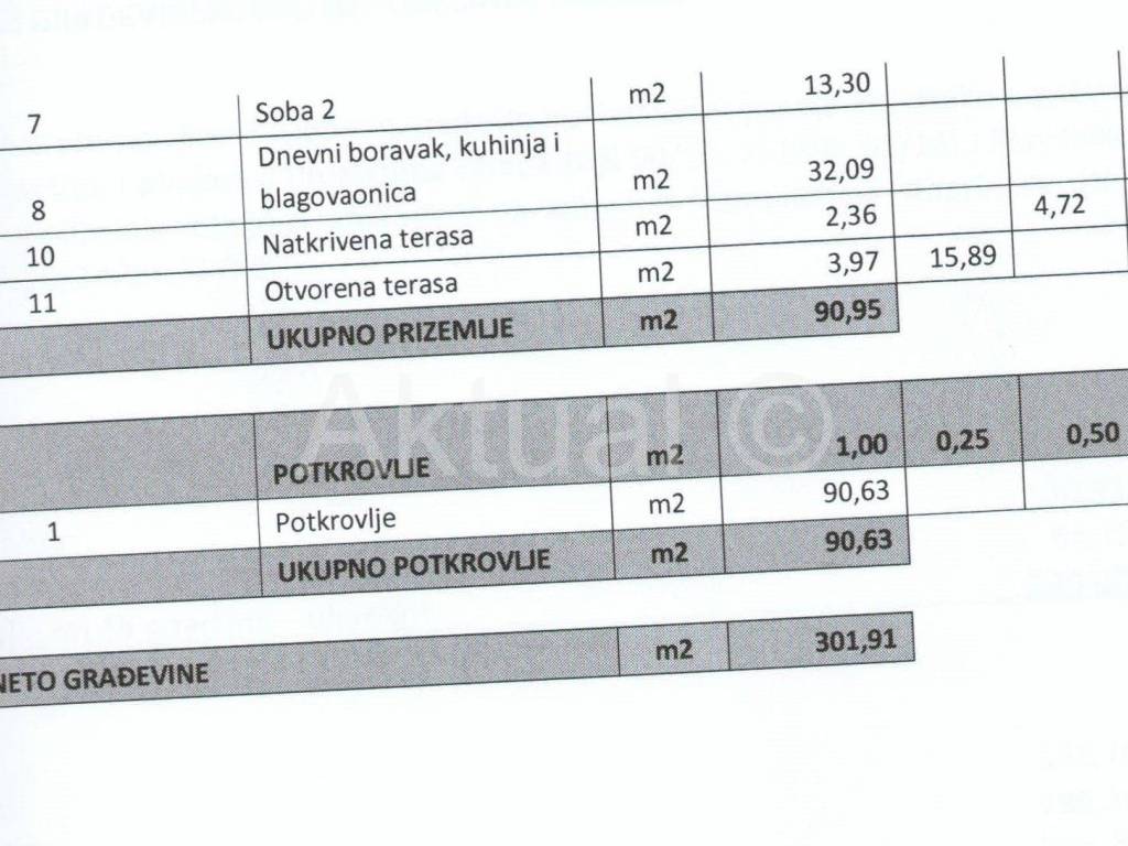 POTKROVLJE nije uređeno i nema prezide, njegova netto površina je 90.63 m2.