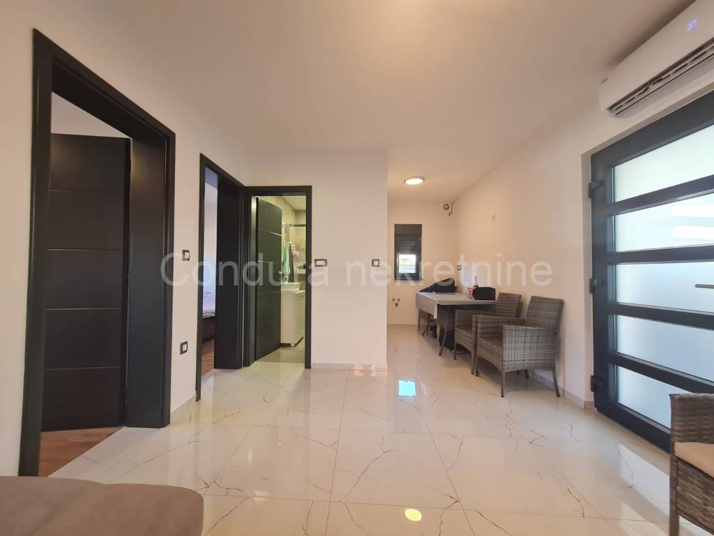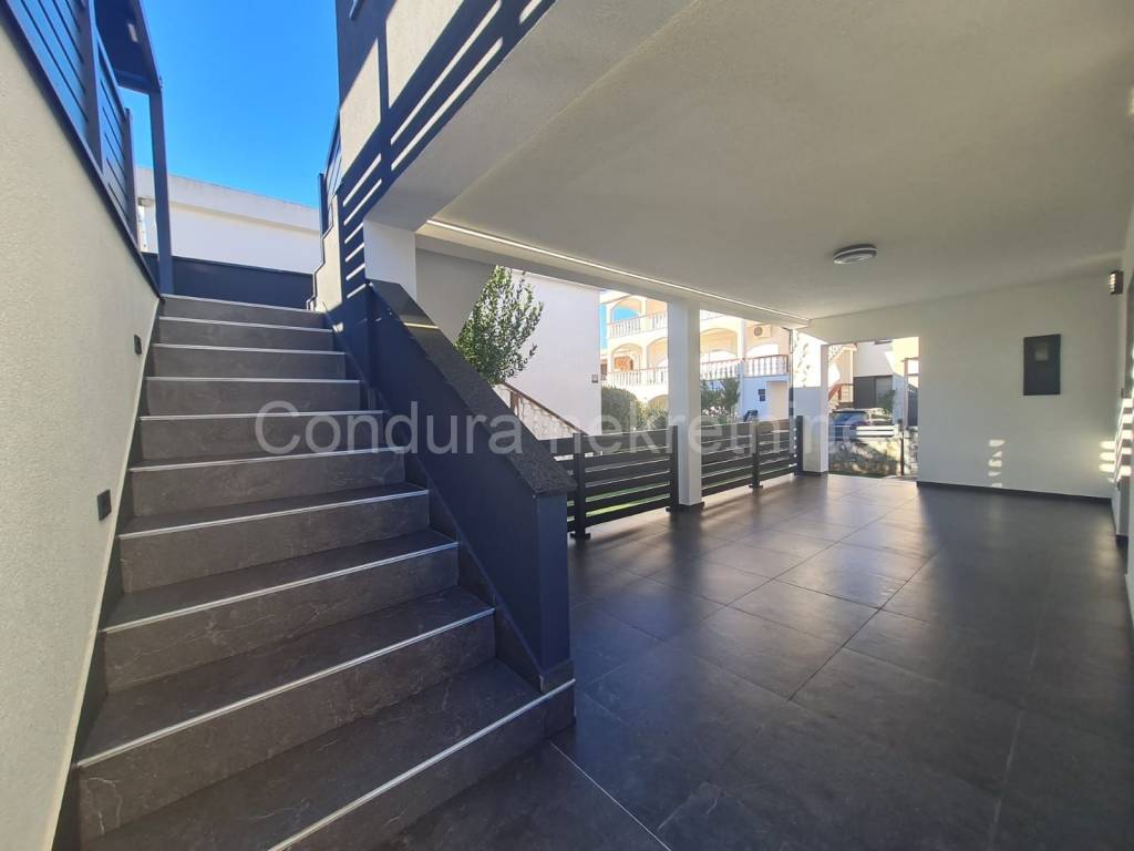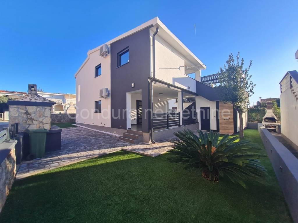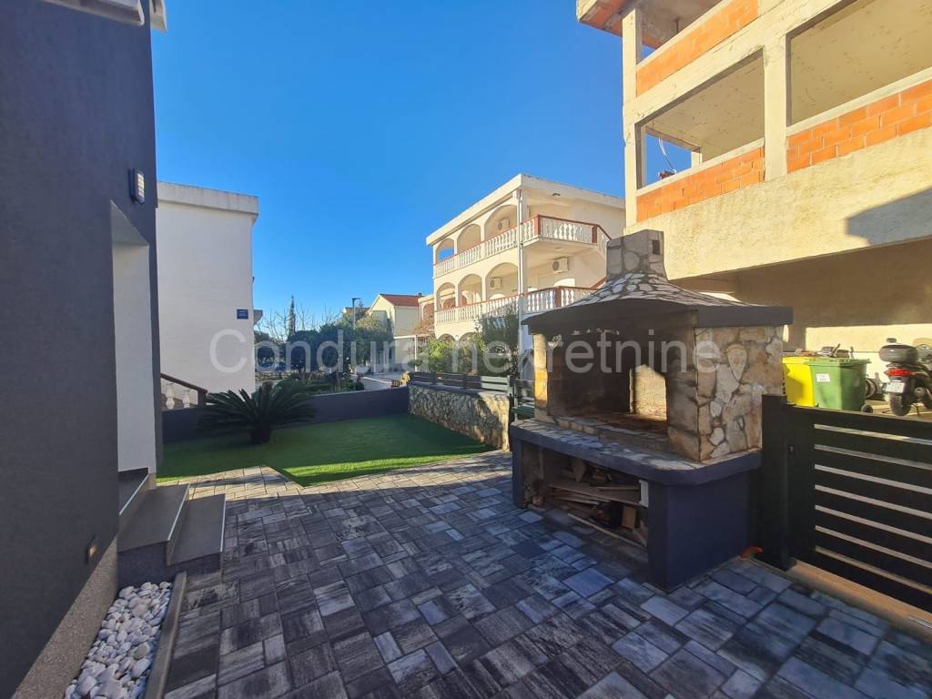 For sale is a house with two apartments and a garage in a great location, on the south side of the island and only 150 m from the first beach. In the immediate vicinity there are all facilities necessary for a pleasant stay and vacation. The house has an area of 144 m2 and consists of a ground floor and oneupper floor, with one apartment on each floor. The apartment on the ground floor consists of a spacious covered terrace, two bedrooms, a bathroom and a living room with a kitchen. The external staircase leads to the upper floor, where there is an apartment with three bedrooms, a bathroom, a living room with a kitchen and also a large covered terrace. On the ground floor, there is also a garage with an area of 21 m2and all electricity and water installations, and above the garage is a large uncovered terrace. In the beautiful and harmonious yard with lots of greenery, there is a storage room, an outdoor shower and a grill. The house was built at the end of the 1980s and was completely renovated in 2024.