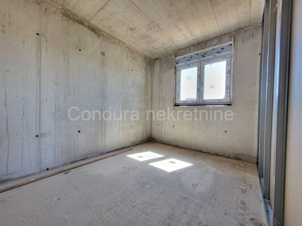 On the ground floor, next to this apartment, there is another apartment for sale with a garden of 68.78 m2. On the attached floor plan, it is marked as S2 and colored red. It consists of: a living room with a kitchen and a dining room, two bedrooms, a bathroom, a corridor and a terrace, and it has a garden and a parking space in front of the building.