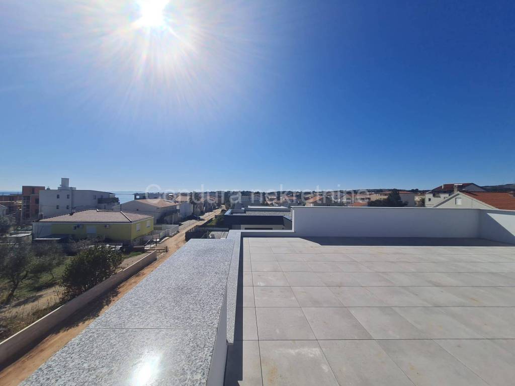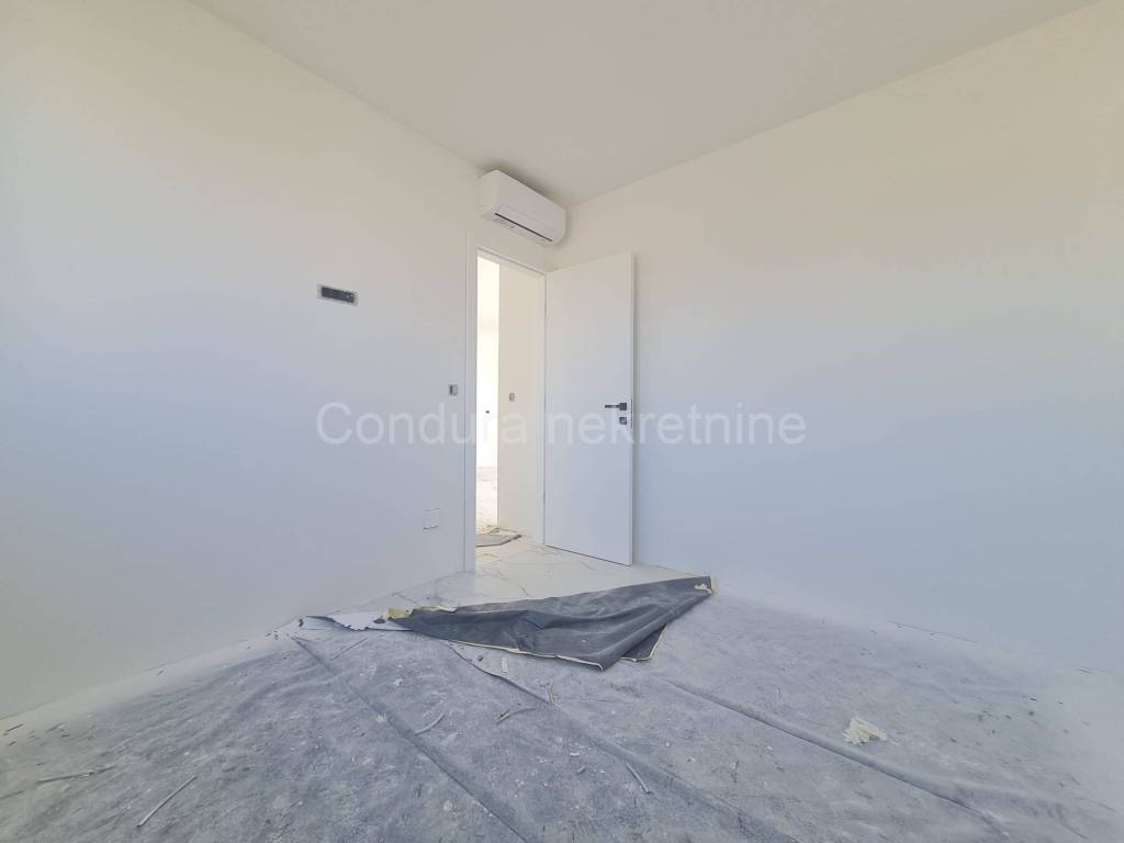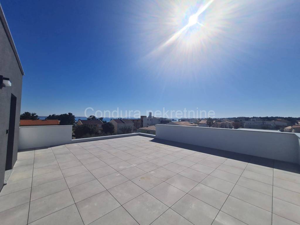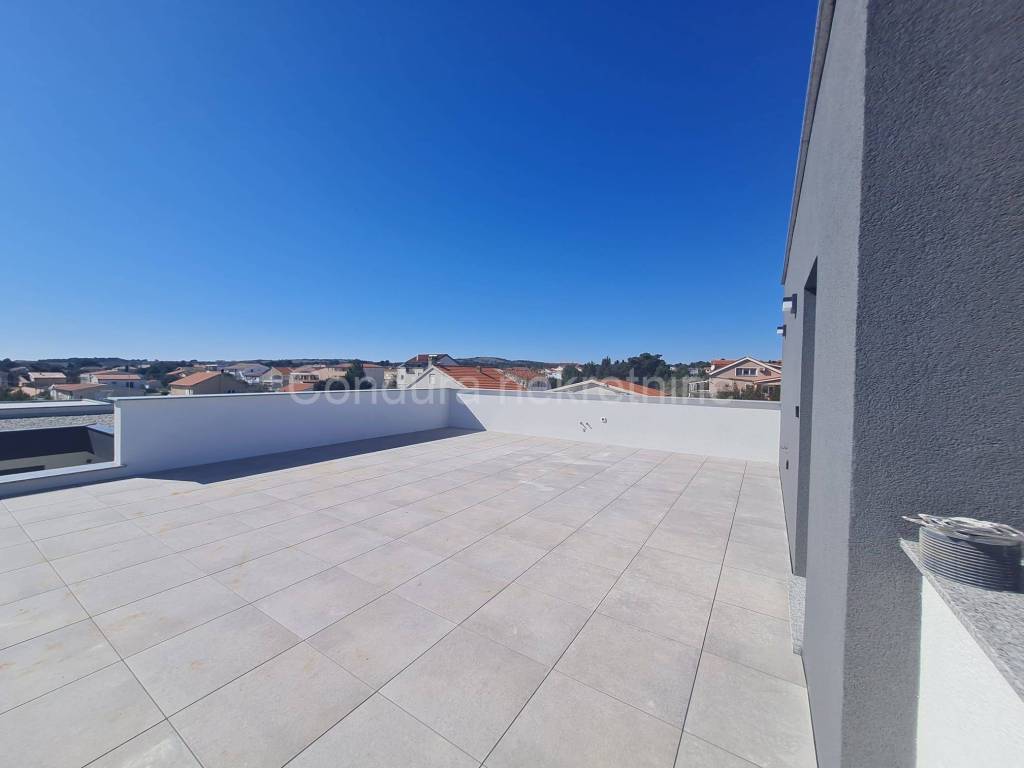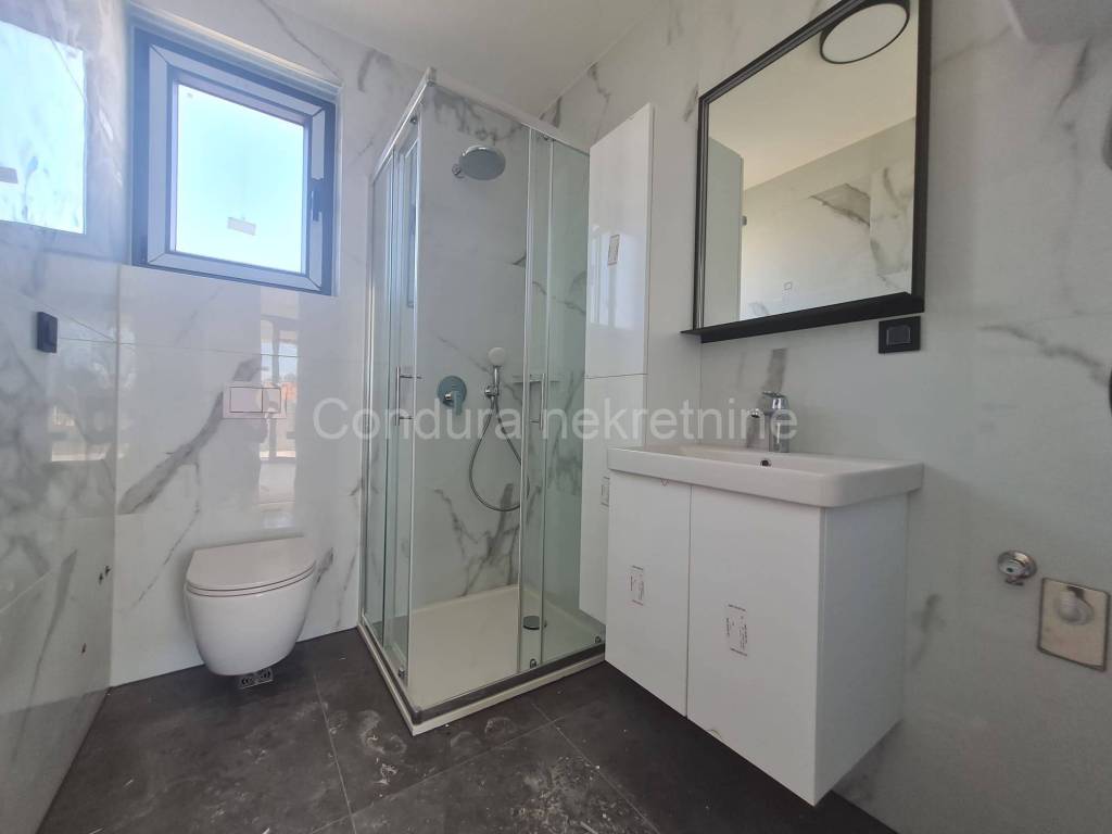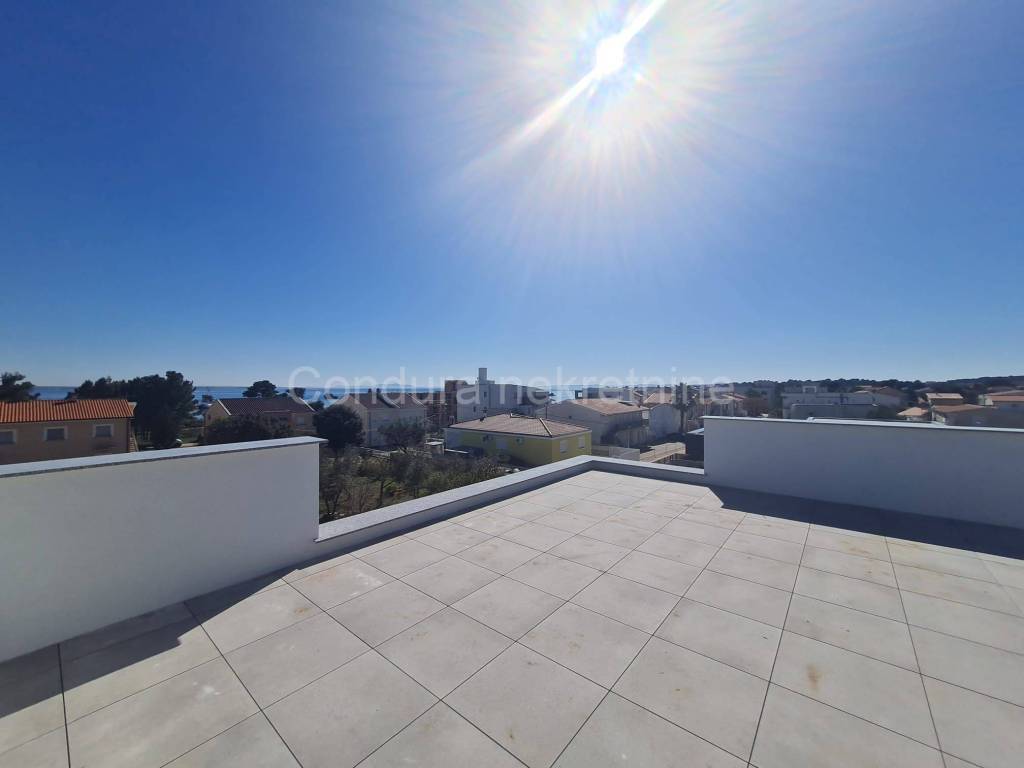 For salearethree apartments on thefirst floor of a new,semi-detached building in an exceptional location only 250 m from the sea. The apartmentshave a total usable area ofca 76 - 79 m2 and consist of two bedrooms, bathroom, kitchen with a living room, terraces, part of the garden (8 - 9 m2), spacious roof terrace (52 - 62 m2) and two parking spaces. Price per apartment: 290 000 Eur Top quality new construction: