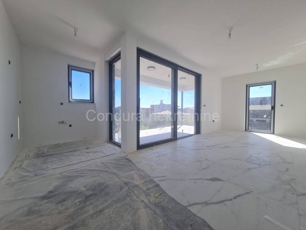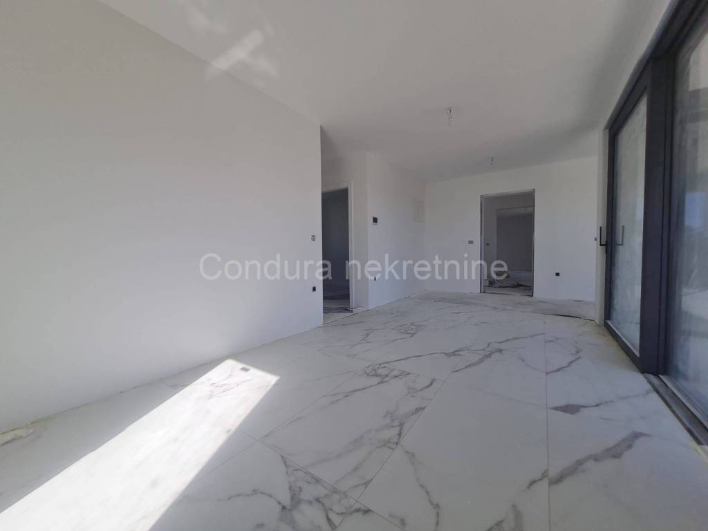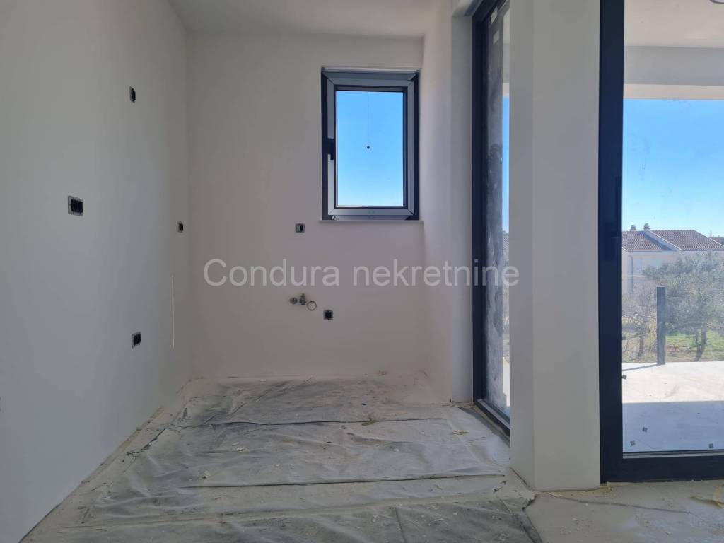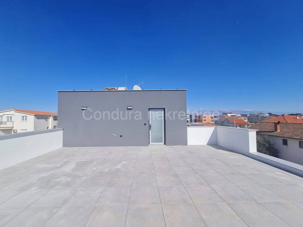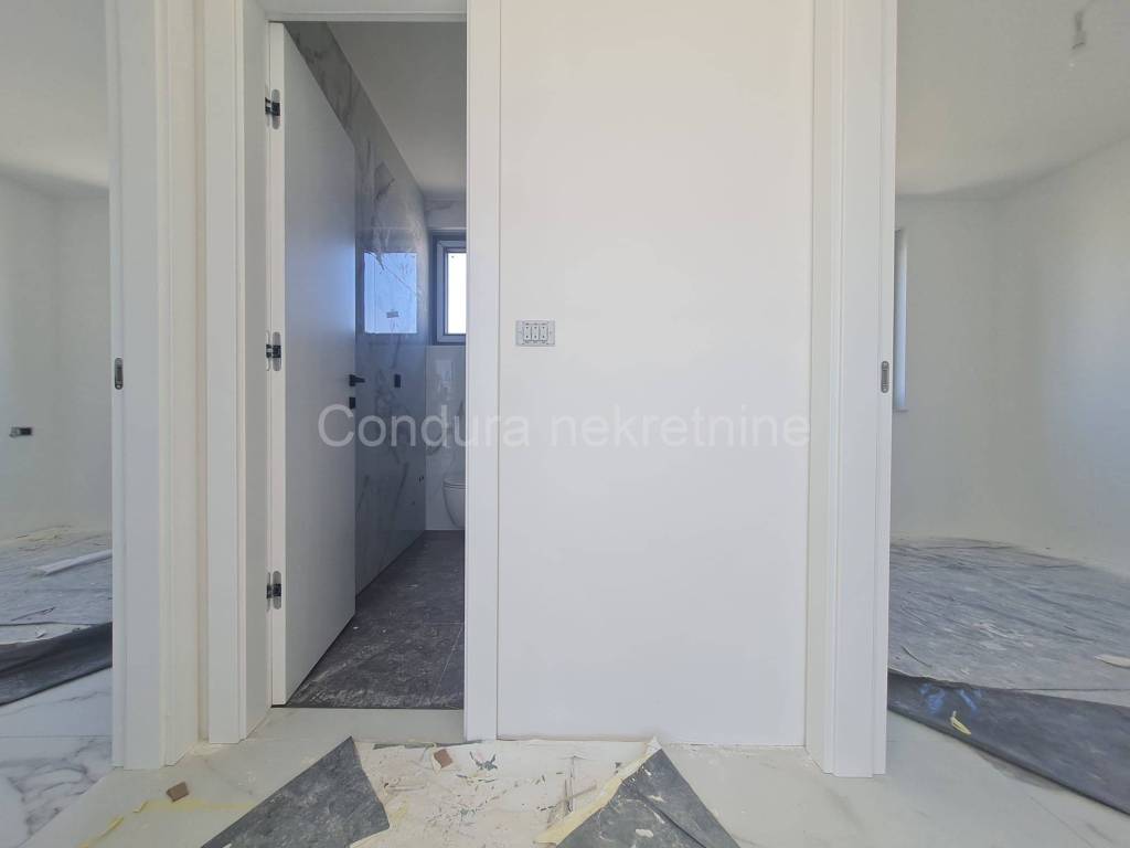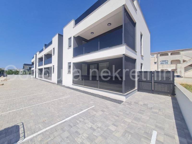 For salearethree apartments on thefirst floor of a new,semi-detached building in an exceptional location only 250 m from the sea. The apartmentshave a total usable area ofca 76 - 79 m2 and consist of two bedrooms, bathroom, kitchen with a living room, terraces, part of the garden (8 - 9 m2), spacious roof terrace (52 - 62 m2) and two parking spaces. Price per apartment: 290 000 Eur Top quality new construction:
