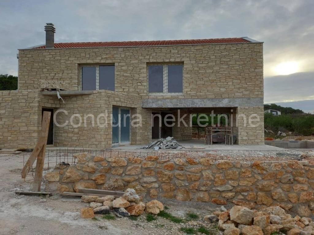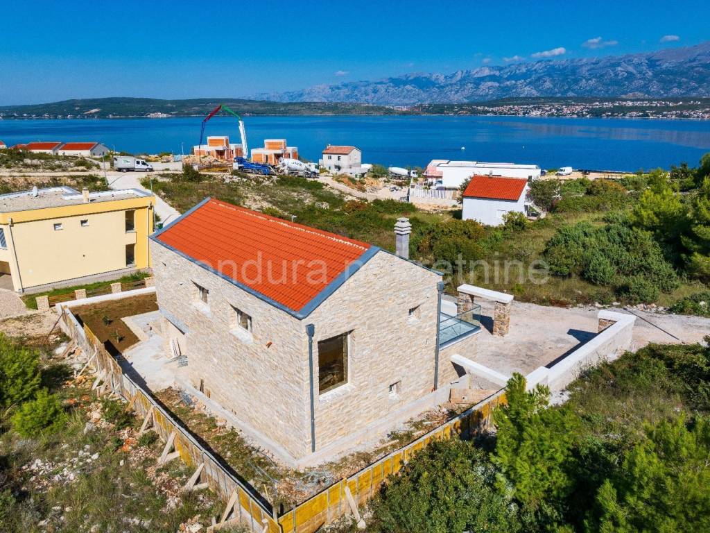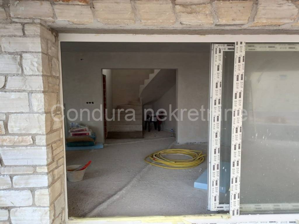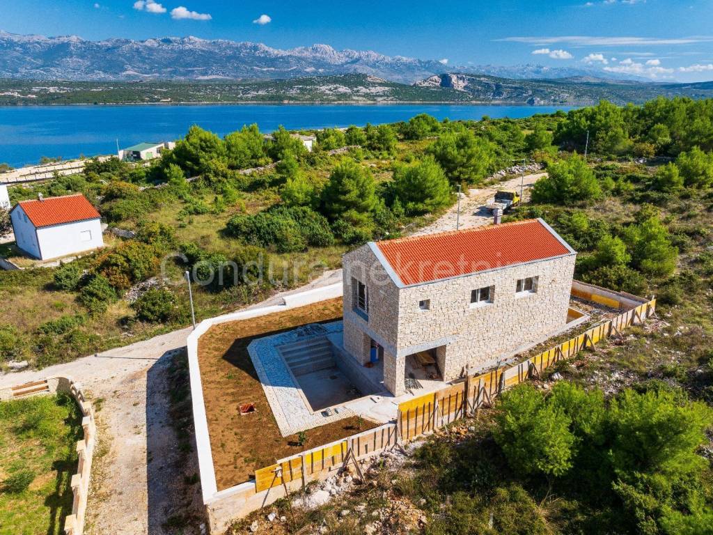 A beautiful stone holiday house with a swimming pool is for sale in a quiet area of Novigrad, only 150 m from the sea and the beach. The house is being built on a plot of land measuring 426 m2 and consists of a ground floor andone upper floorwith a total net area of 116,18 m2. On the ground floor there is an entrance area, a toilet, a living room with a kitchen and a dining room, and a covered terrace with a summer kitchen. Theupper floor consists of a hallway, two bedrooms, a bathroom and a master bedroom with its own bathroom and access to an uncovered terrace with a beautiful view of the sea. In front of the terrace on the ground floor is a swimming pool (24,5 m2) with a sunbathing area. The entire plot will be surrounded by a stone wall. High quality new construction: - brick + styrofoam + stone cladding (20 cm) - floors covered with a combination of tiles and parquet - ALUjoinery with LOW-E double IZO glass- air conditioning for cooling and heating The building is under construction, the planned completionconstruction is summer/2024. Property suitable for permanent residence as well as rental in tourism.