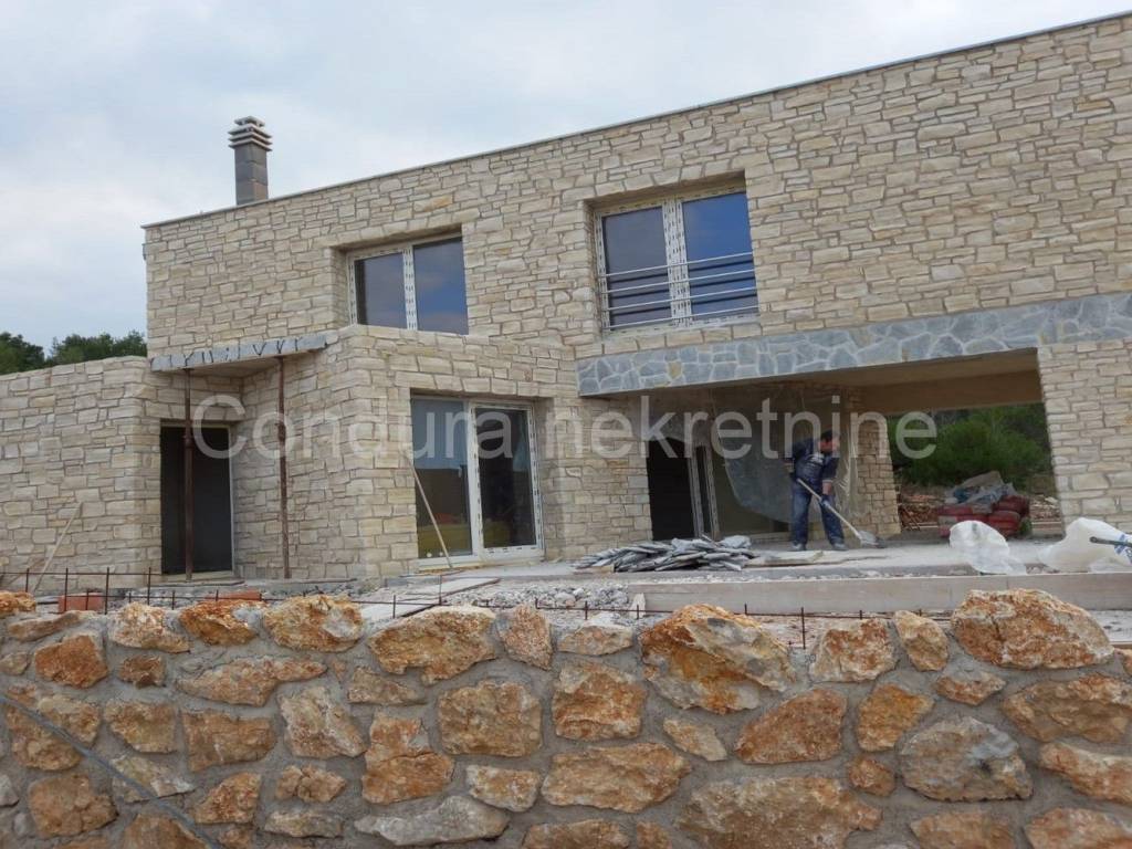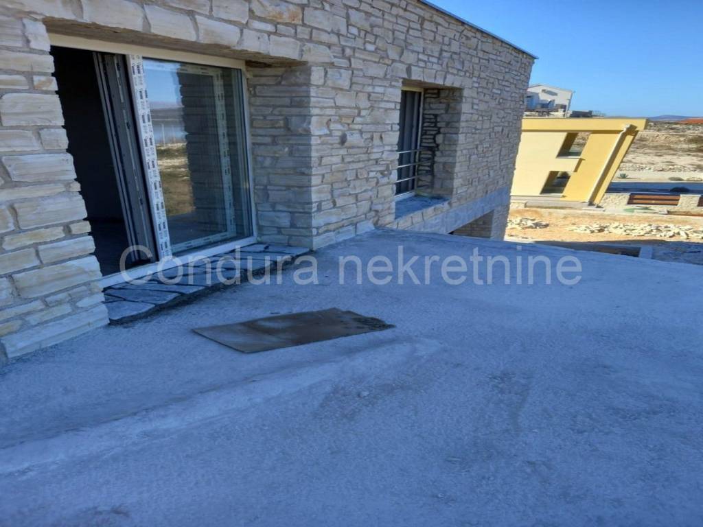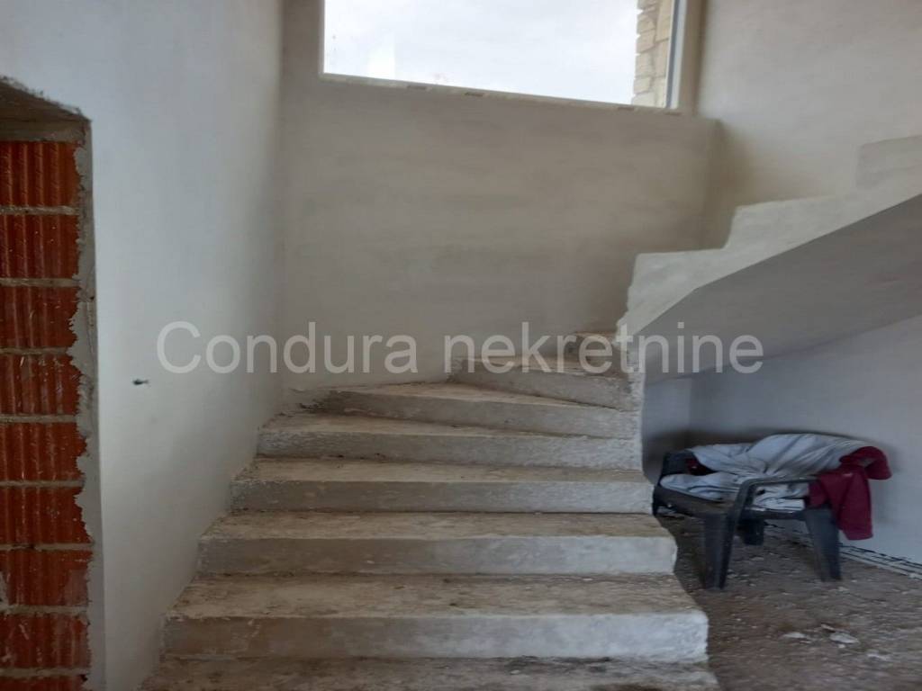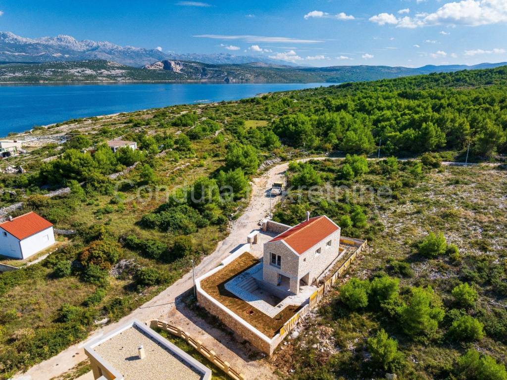 A beautiful stone holiday house with a swimming pool is for sale in a quiet area of Novigrad, only 150 m from the sea and the beach. The house is being built on a plot of land measuring 426 m2 and consists of a ground floor andone upper floorwith a total net area of 116,18 m2. On the ground floor there is an entrance area, a toilet, a living room with a kitchen and a dining room, and a covered terrace with a summer kitchen. Theupper floor consists of a hallway, two bedrooms, a bathroom and a master bedroom with its own bathroom and access to an uncovered terrace with a beautiful view of the sea. In front of the terrace on the ground floor is a swimming pool (24,5 m2) with a sunbathing area. The entire plot will be surrounded by a stone wall. High quality new construction: - brick + styrofoam + stone cladding (20 cm) - floors covered with a combination of tiles and parquet - ALUjoinery with LOW-E double IZO glass- air conditioning for cooling and heating The building is under construction, the planned completionconstruction is summer/2024. Property suitable for permanent residence as well as rental in tourism.