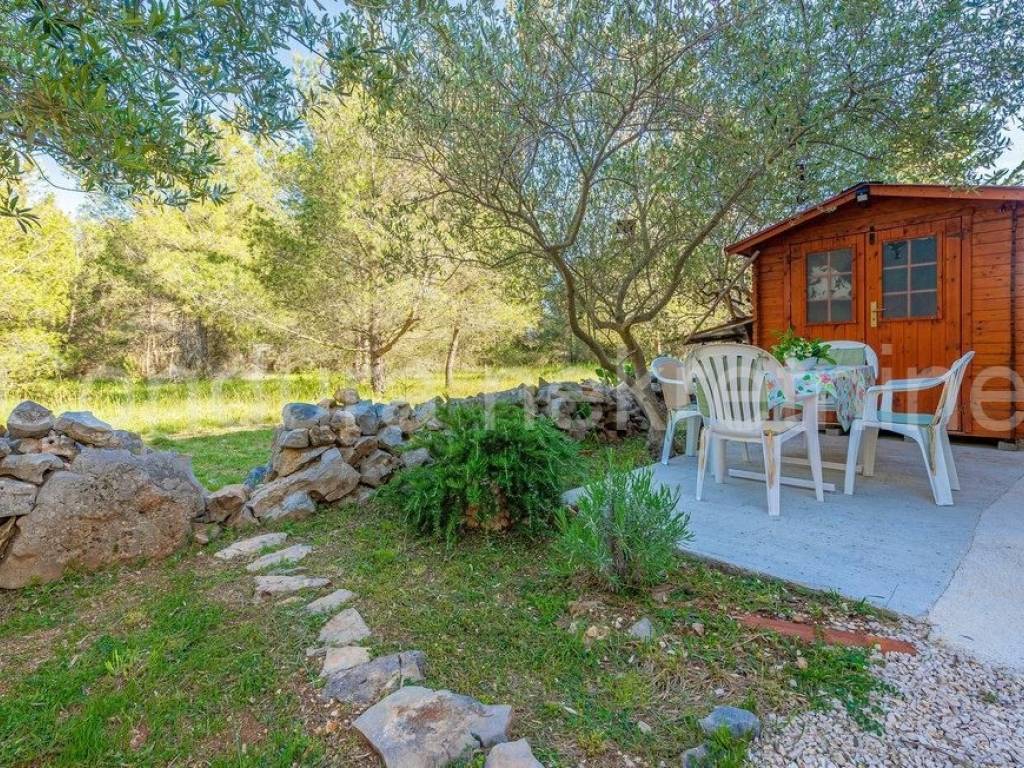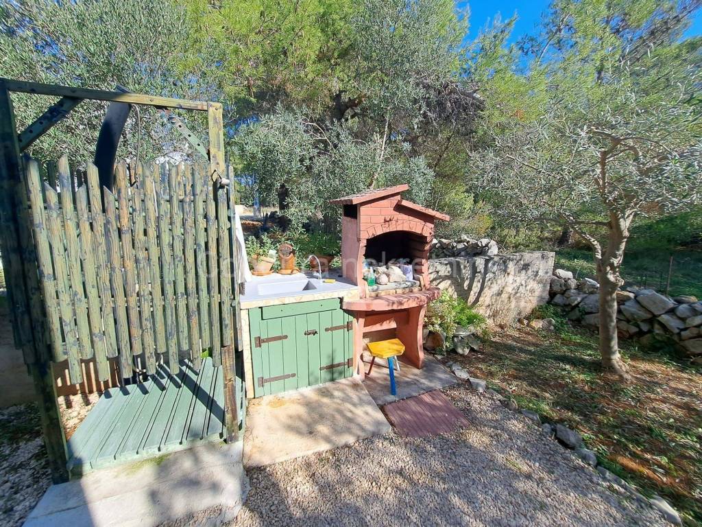In the yard there is a storage room, a solar shower, a barbecue and a wooden house that serves as a storage room for wood.