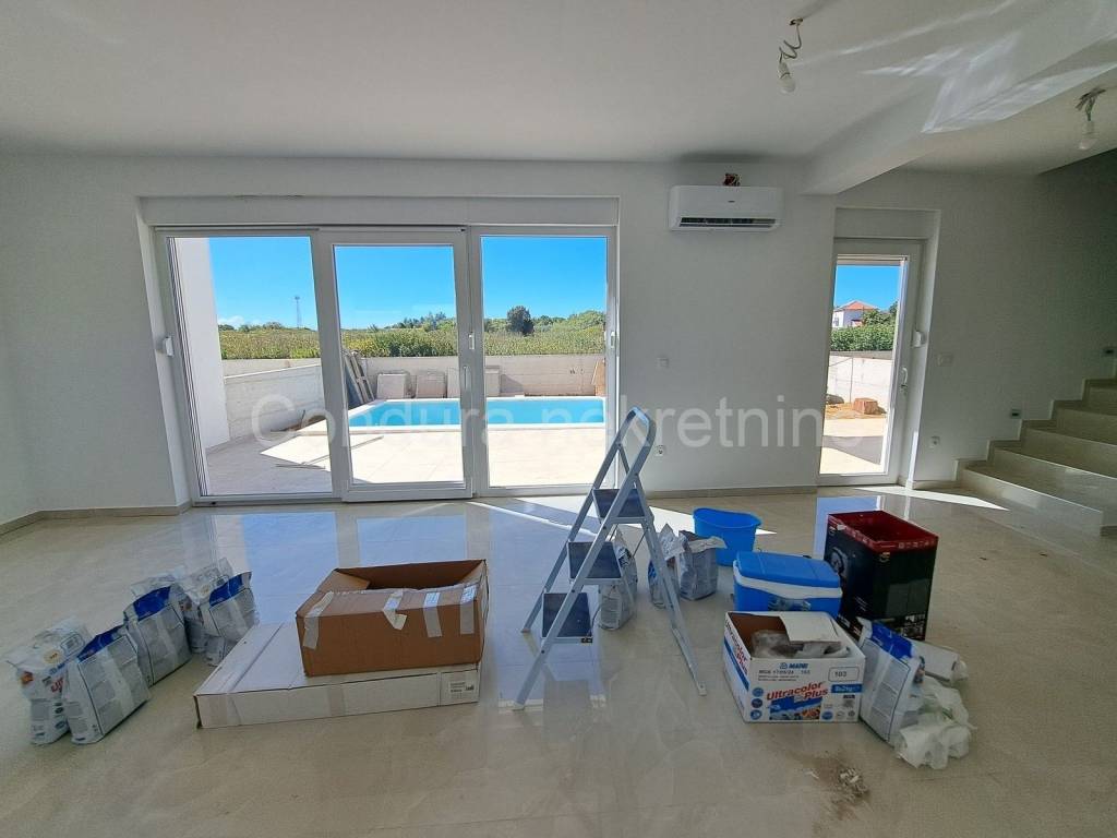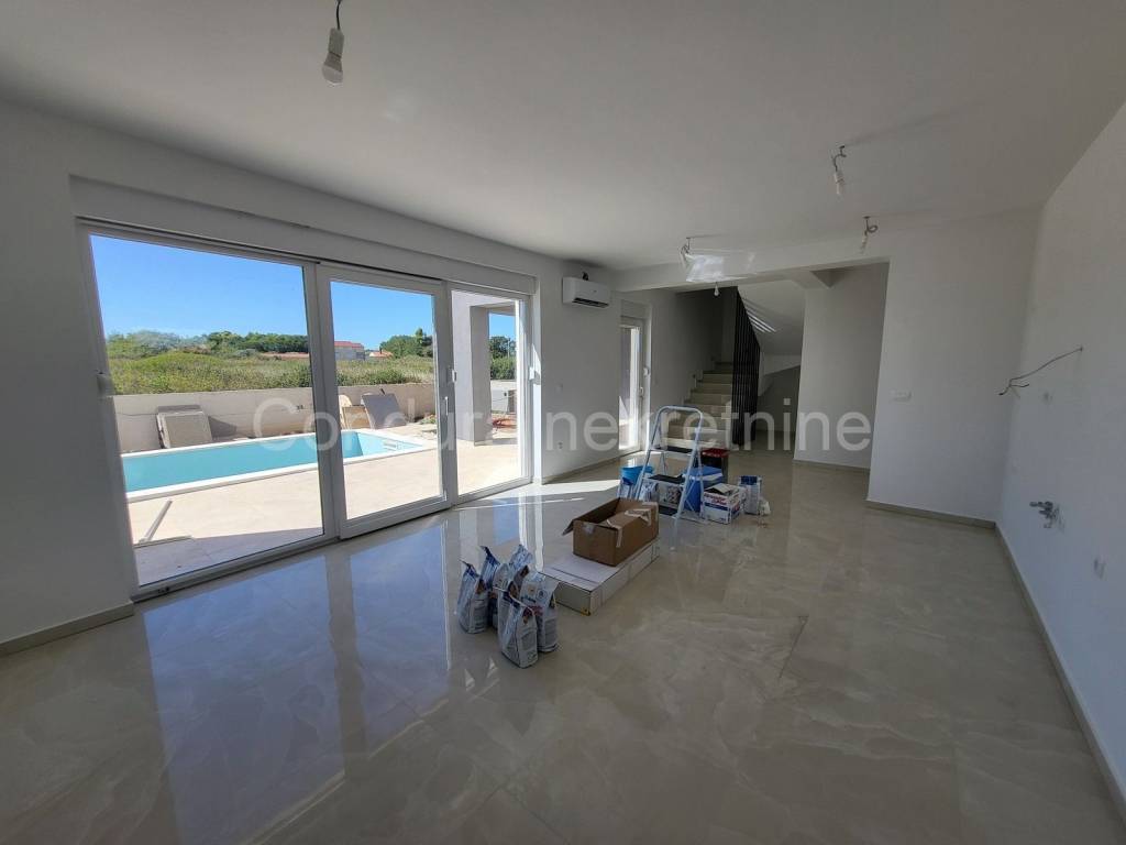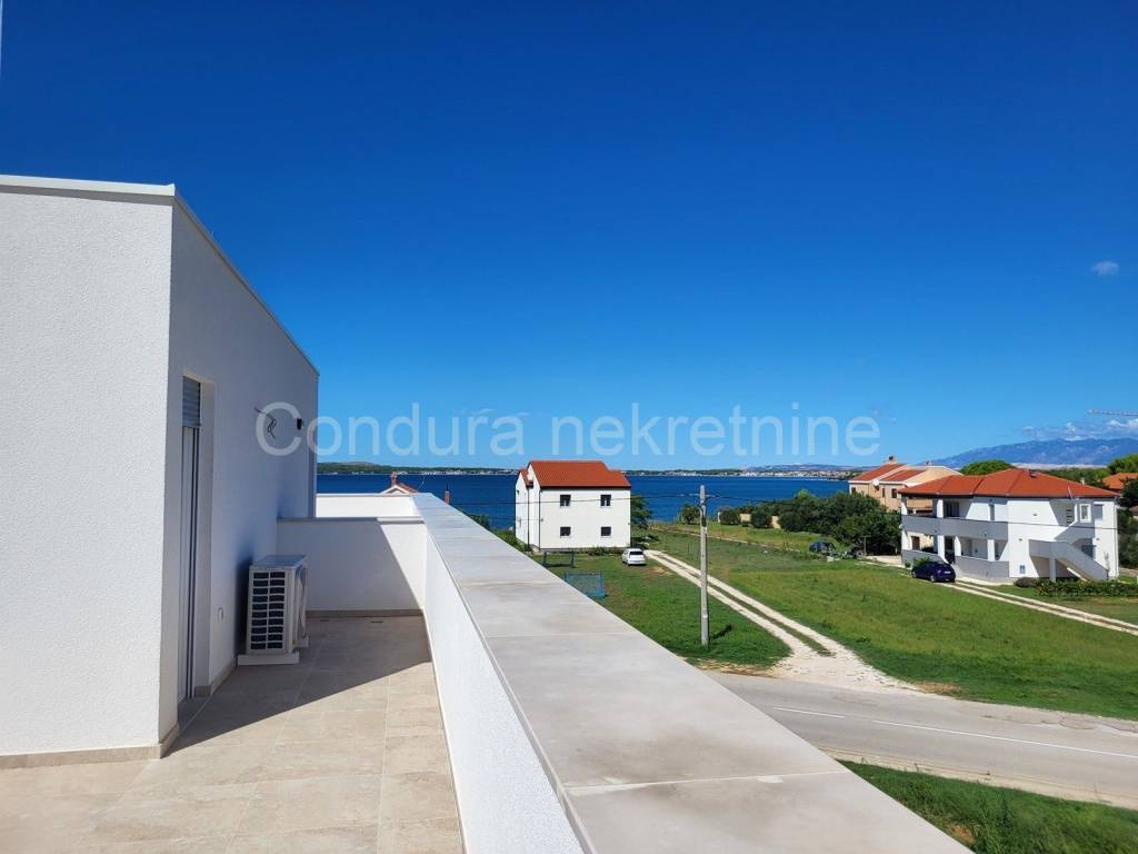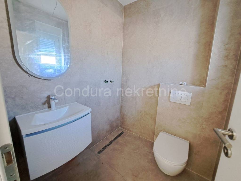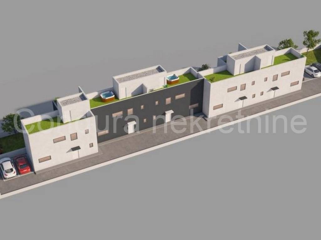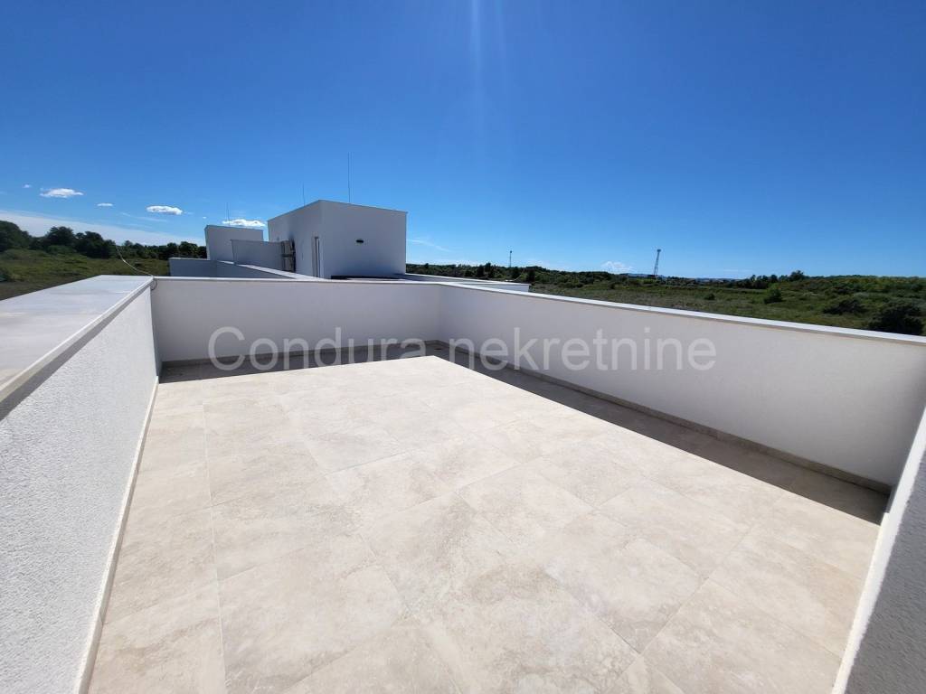 Two-story apartment with roof terrace is for sale in an excellent location in the immediate vicinity of the sea. It is located in a residential building with a total of five residential units. The apartment has a net usable area of approx. 95 m2 and consists of a ground floor with a bathroom, kitchen and living room with access to the the garden with a swimming pool of approx. 15 m2. Upstairs there are two bedrooms and another bathroom. An internal staircase leads to a spacious uncovered terrace with a jacuzzi and a beautiful open view of the sea and the surrounding area. The apartment will have one parking space. Top quality new construction: