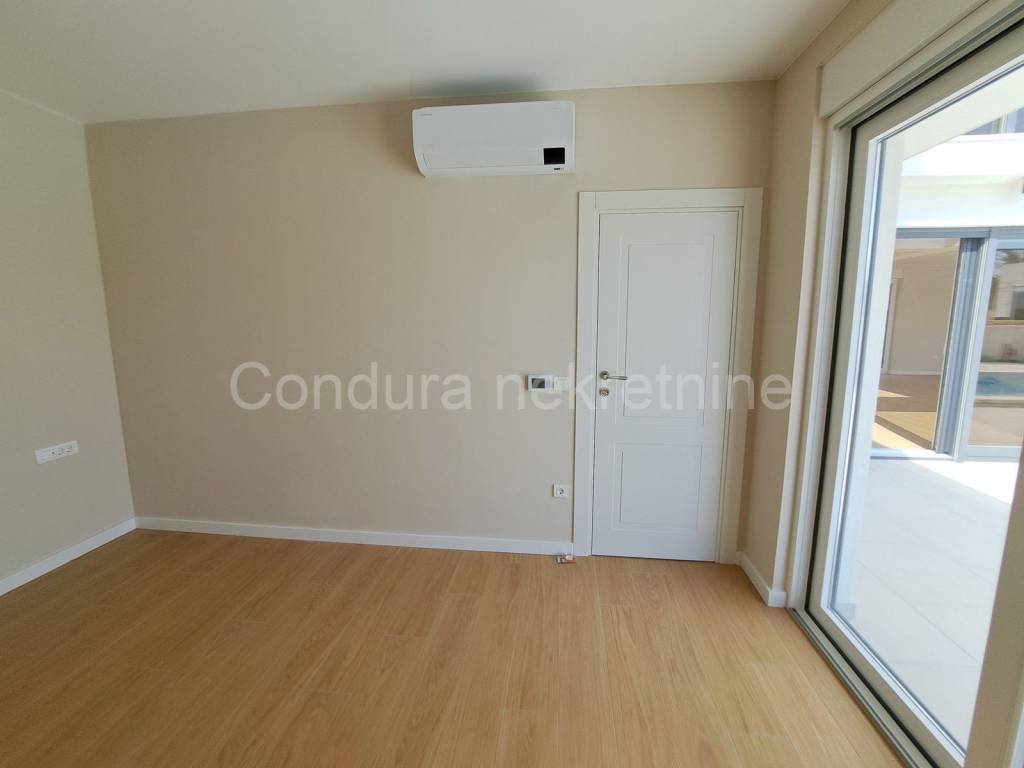 The villa has a net area of 188 m2 and is being built on a plot of land of 450 m2.On the ground floor there is a kitchen, a spacious living room with kitchen and dining room, two bedrooms with their own bathroom.Large glass walls allow plenty of daylight. From the living room there is access to a beautifully decorated area with a swimming pool (8m x 3.5m), an outdoor shower and a summer kitchen, ideal for socializing, drinking morning coffee or evening cocktails.
