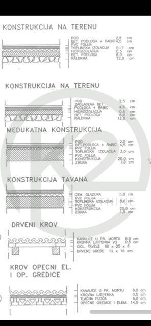 Kuća je sagrađena 2012. g., izuzetno kvalitetno, konstrukcija opeka i armirani beton, krovna konstrukcija od betonskih gredica i ciglenih tavelica, na podu hrastov parket, prvoklasne keramičke pločice, ulaz u kuću i okolno opločenje obloženo kamenim pločama tipa Kanfanar. Stolarija drvena, tipska sa IZO staklima.