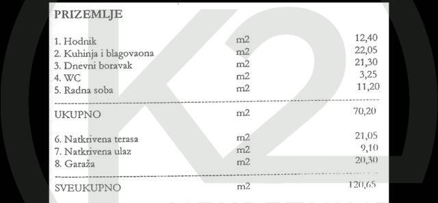 Uz kuću je smještena garaža i 2 parkirna mjesta.