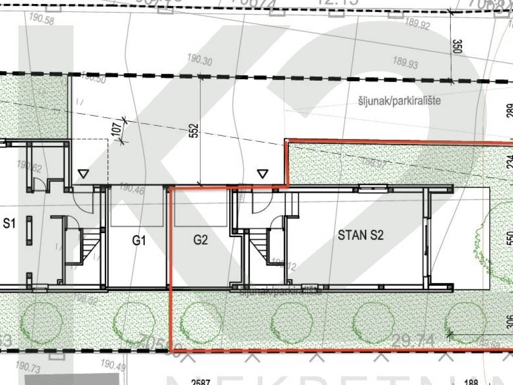 Kuća oznake S2 nalazi se zapadne orijentacije te se sastoji od prizemlja i kata: