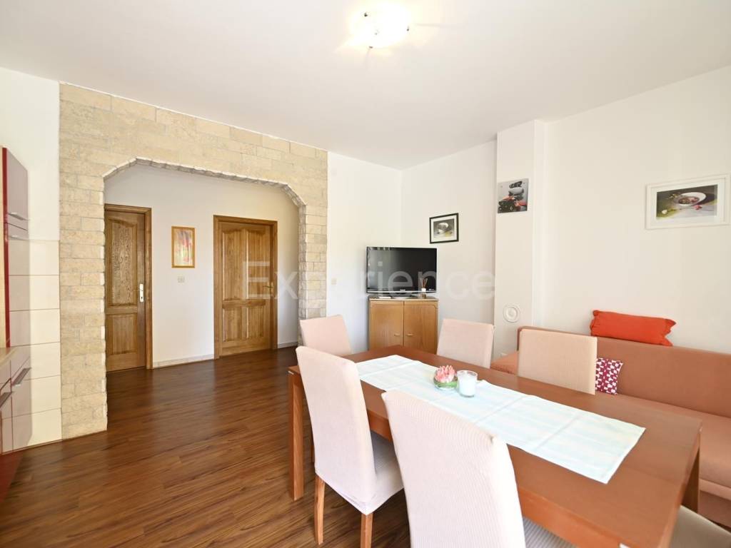 The apartments are fully equipped and well maintained. A boiler with a volume of 500 liters is installed in the boiler room connected to solar panels, which are used to heat domestic water. The apartment on the first floor has built-in central heating on fuel oil. The first phase of central heating was implemented for the other apartments. Heating is regulated by air conditioning.
