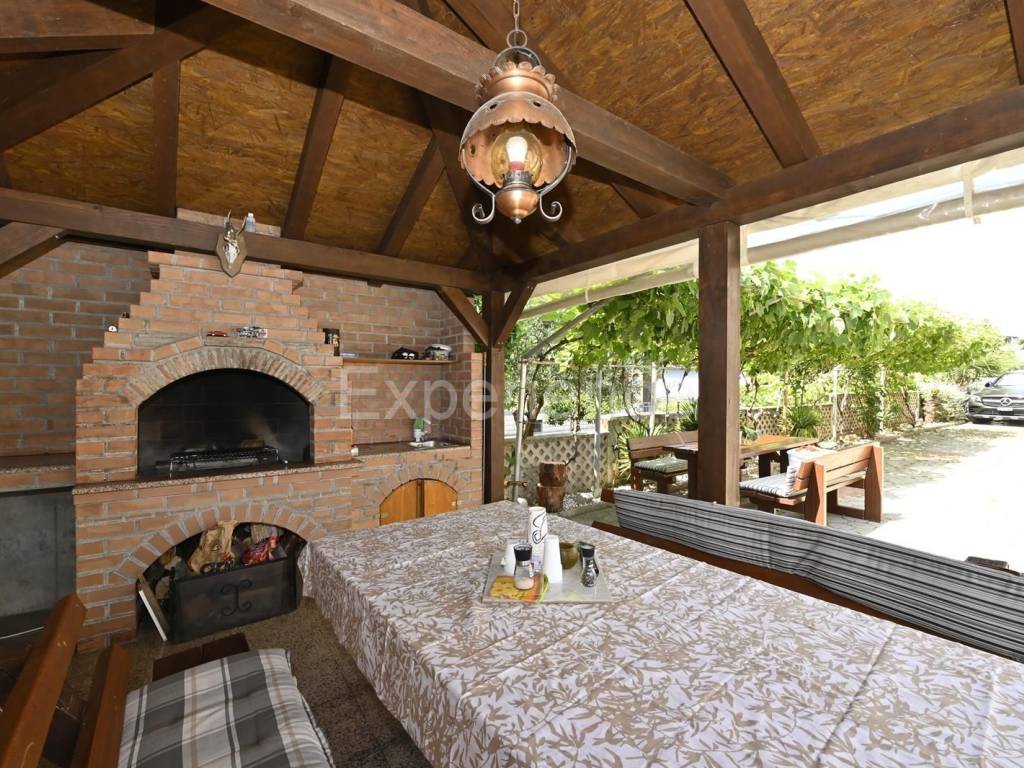 In the landscaped garden there is a summer kitchen with a fireplace.