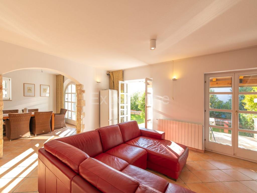 Next to the pool, a small stone garden house of 7 m has been built, where everything is provided for the sauna or can be used as a storage room. There is an outdoor shower next to the pool and the house. The house has 2 parking spaces. The entire garden is enclosed by a wall, greenery or a metal fence. In the back of the house, near the pool, there is a storage room/boiler room and a summer kitchen. The house is sold with custom-made furniture for the entire house.