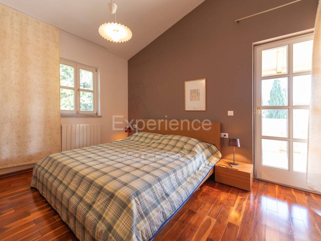 Beautiful semi-detached house is located in a quiet location not far from Poreč and only 1 km from the sea. It was built in 2006., and the owners renovated it in 2021., and are continuously maintaining it. They bought it and used it exclusively for their needs, the house has never been rented! It has a total of 155.55 m with terraces (135 m of closed space), on a plot of 367 m. The garden is 200 m. The house consists of a ground floor and a first floor, it has a Mediterranean-rustic style. On the ground floor there is a hallway, a bedroom, a bathroom, a large living room with a fireplace and a kitchen with a dining room. From the living room and the kitchen there is access to the covered terrace where there is another fireplace and dining table, and to the garden. Upstairs there are two more bedrooms, each with its own bathroom, which share a spacious covered terrace.