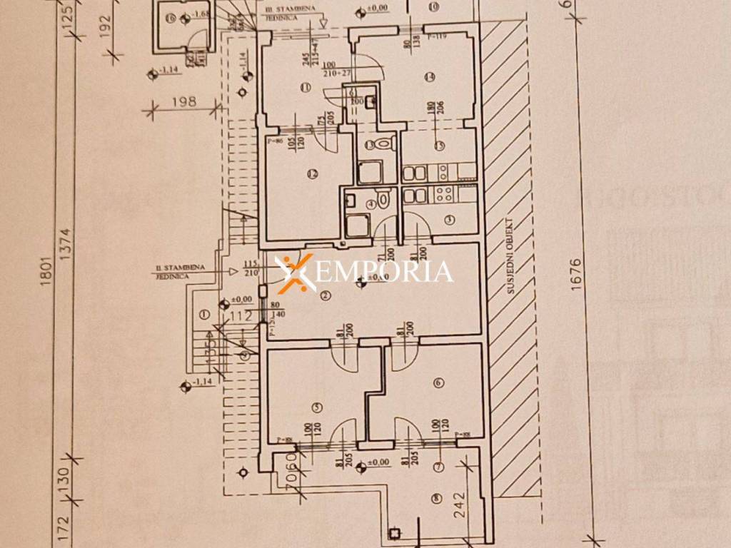 In Privlaka – in the area of ​​Sabunike – a house with 5 apartments is for sale. Distance between the house and the beautiful sandy beaches and the sea is only 460 m.House consists of basement, ground floor and first floor. In the basement there is an apartment with two bedrooms and a storage room. Basement area is 75.16 m2. There are two apartments on the ground floor, one with one bedroom and the other with two bedrooms. Ground floor has a total area of ​​116.80 m2. There are two more one-bedroom apartments on the first floor. The 1st floor has 105.87 m2.Total area of ​​the house is 297.83 m2. Land area is 297 m2. There are 4 parking spaces in the yard.Distance of the house from the center is 2.6 km.