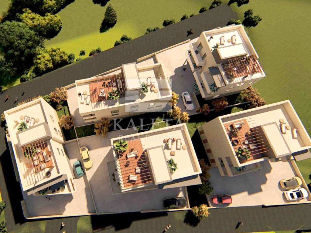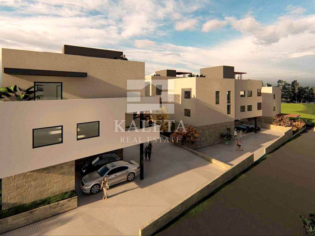 Apartments for sale in a new residential complex in Petrčane near Zadar, only 650 m from the sea (air distance). There are 5 buildings, each with 4 apartments, and each apartment includes 2 parking spaces.