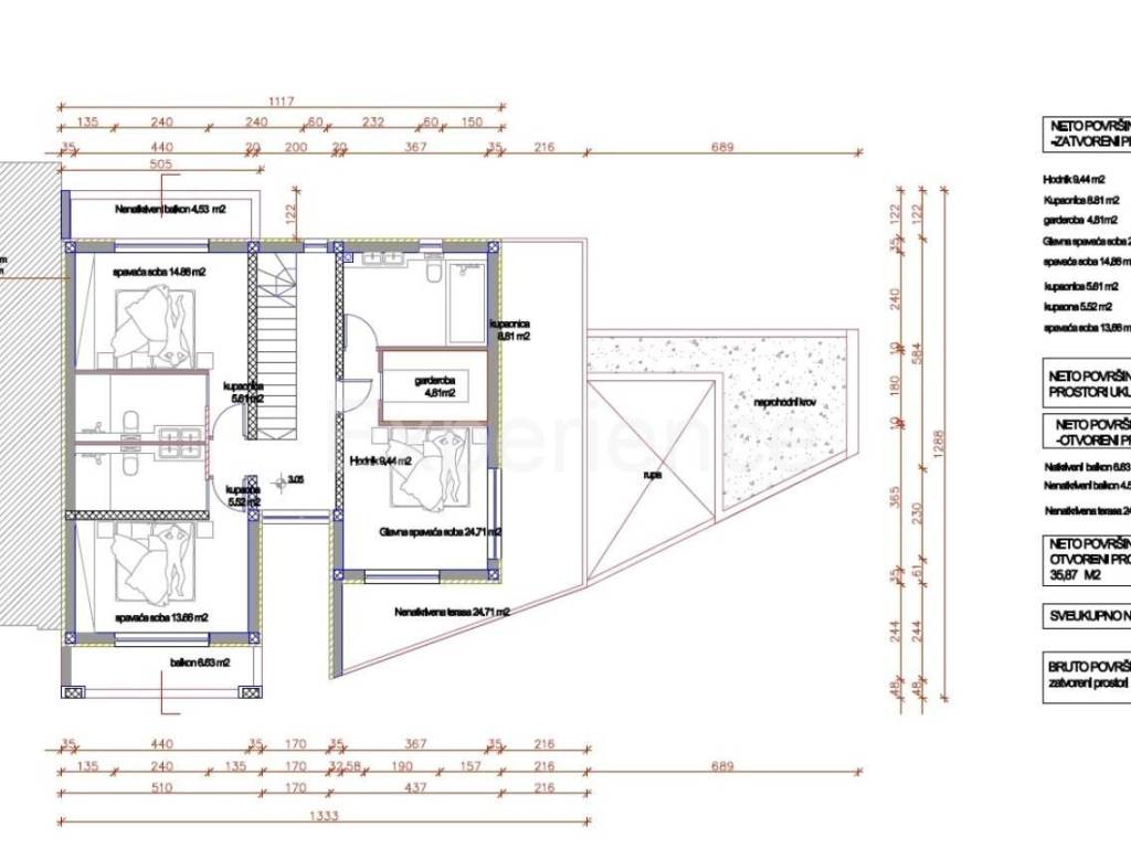 Ishodovana je građevinska dozvola i plaćene su komunalije za izgradnju dvojne obiteljske kuće sa bazenom, ukupne neto površine 317 m. Plaćen je komunalni doprinos u iznosu od 7.500 .