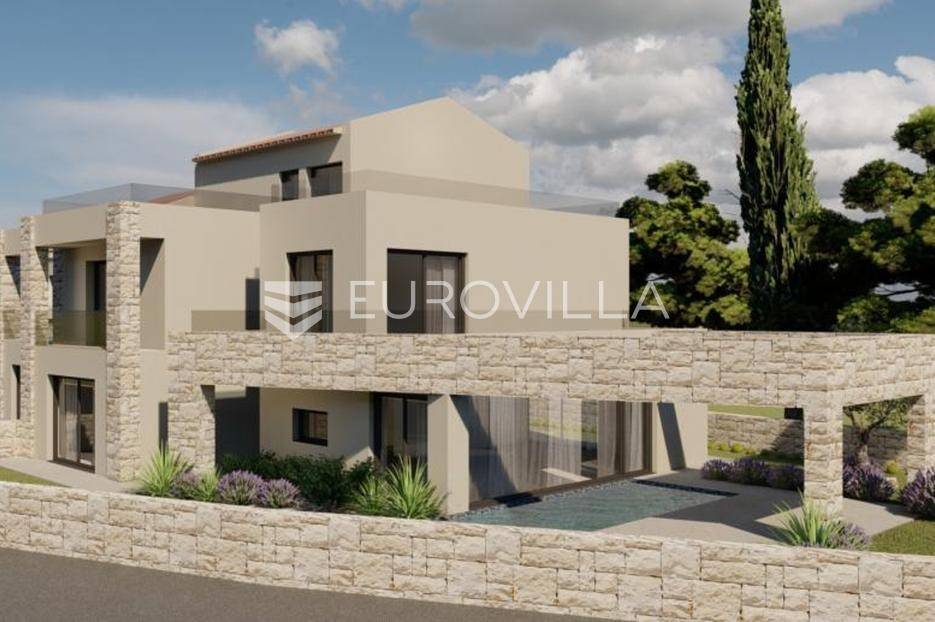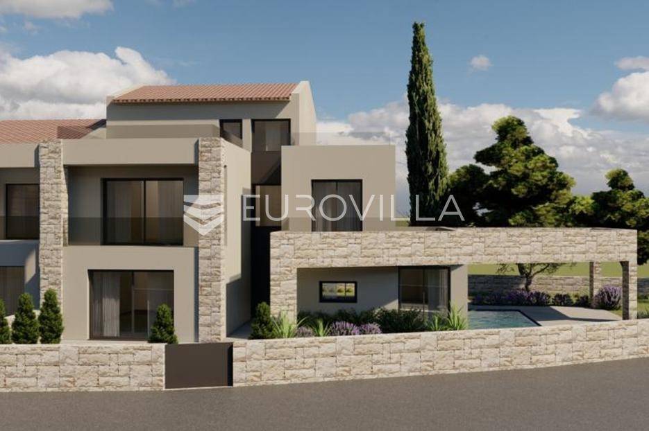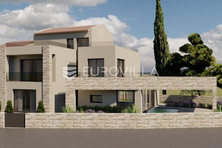 U neposrednoj blizini šarmantnog istarskog mjesta Vižinada smjestila se građevinska parcela ukupne površine od 561 m2 s plaćenim komunalijama, ishodovanom pravomoćnom građevinskom dozvolom i projektom kuće za odmor ukupne stambene površine od 272,53 m2 + 44,66 m2 bazena.Objekt se sastoji od četiri spavaće sobe, dvije natkrivene terase s ljetnom kuhinjom u prizemlju, dnevnim boravkom, teretanom, wellness prostorijom na drugom katu te već navedenim prostranim bazenom.Planirani objekt je dio dvojne kuće i jednom stranom se dodiruje s objektom na susjednoj parceli, ali je na samostalnoj katastarskoj čestici i ima vlastitu građevinsku dozvolu i može se graditi neovisno o susjednom objektu te je isti vlasnik obadvije parcele.Projektirani objekt zadovoljava kriterije kategorizacije 4* i zamišljen je da omogući produžetak turističke sezone zbog ponude wellnessa sa saunom i jacuzzijem na drugom katu odakle se pruža fantastičan pogled prema Motovunu. Pravomoćna građevinska dozvola je ishođena prije promjene urbanističkog plana općine Vižinada, po sadašnjem planu nije više moguća gradnja drugog kata. Na rubu parcele koja je na prodaju je ormarić HEP-a s priključkom struje kao i šaht s postavljenim satom za vodu. Asfaltiranom ulicom prolazi kanalizacija. Parcela je na rubu građevinskog područja i ima slobodan pogled na poljoprivredno zemljište, vide se planine Učka i Ćićarija. Plaćen je komunalni doprinos u iznosu od 7500 eura i uračunat je u konačnu cijenu.Za više informacija slobodno nas kontaktirajte.