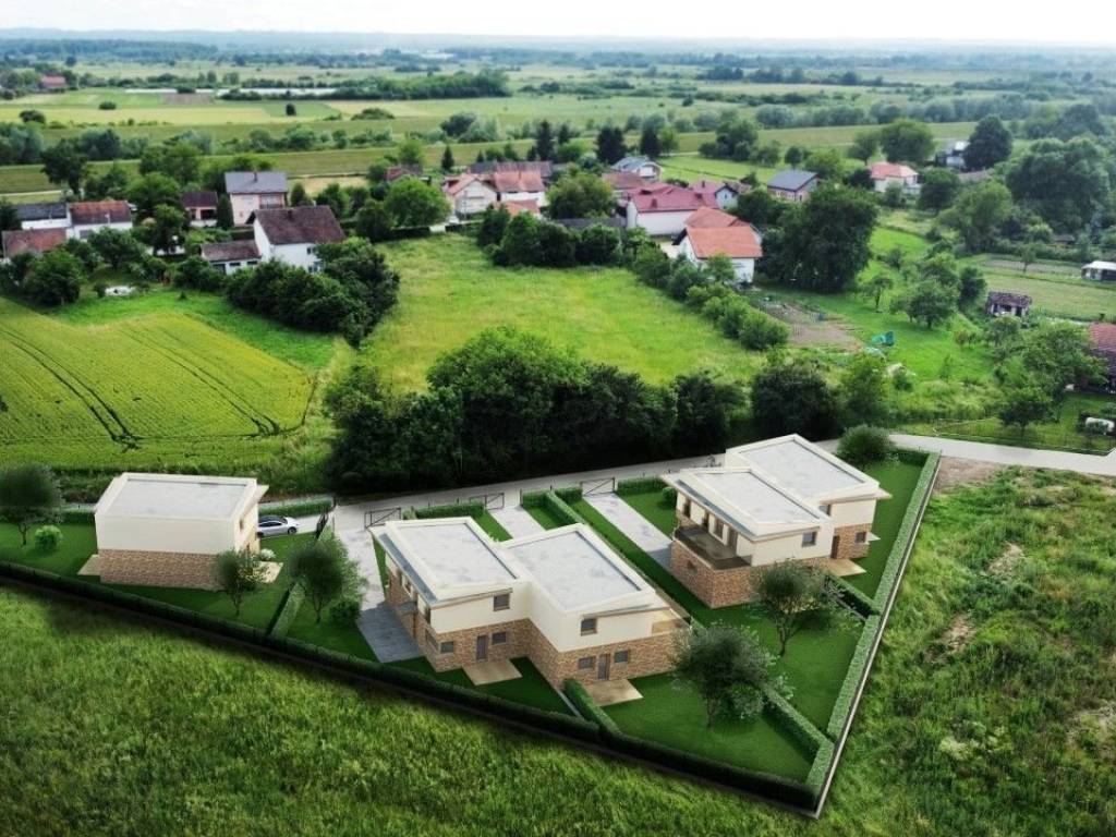 Građevinsko zemljište u mjestu Kuče udaljeno od Velike Gorice oko 7 km u mirnoj i slijepoj ulici. Na zemljištu je napravljen idejni projekat za pet kuća. Kuće tipa 1a i 1b su površine 138.84 m2, 2a i 2b su površine 118, 84 m2 i kuća tip-3 je površine 113,14 m2. Vlasnička dokumentacija uredna. Mogućnost kupnje gradilišta pojedinačno.