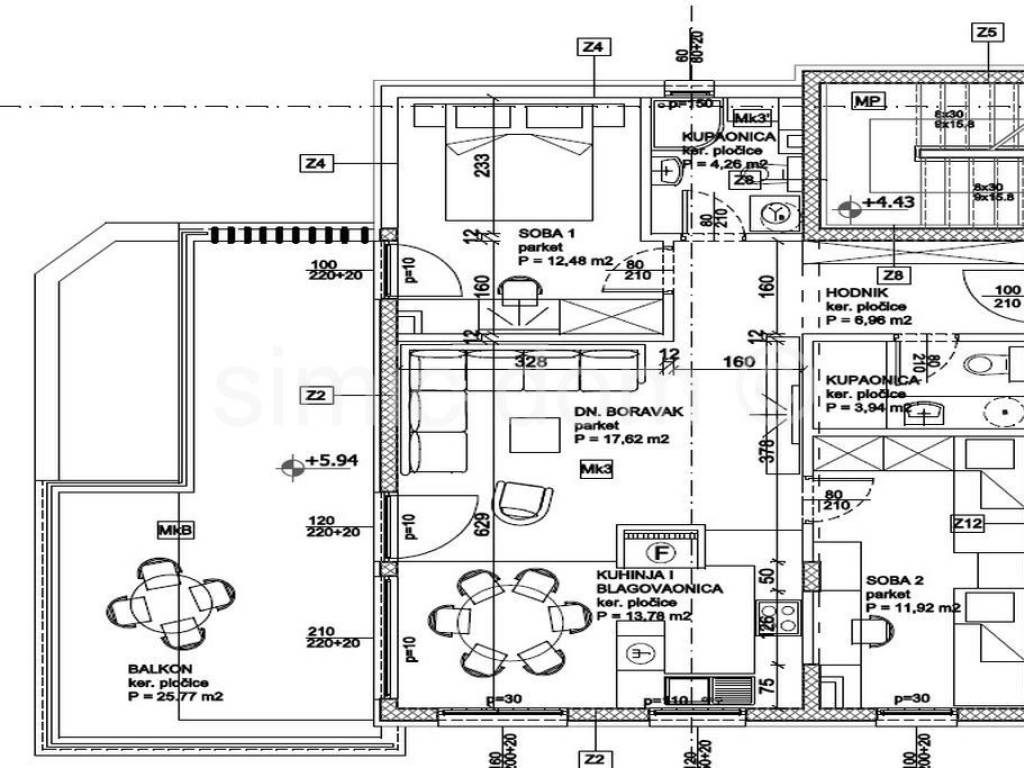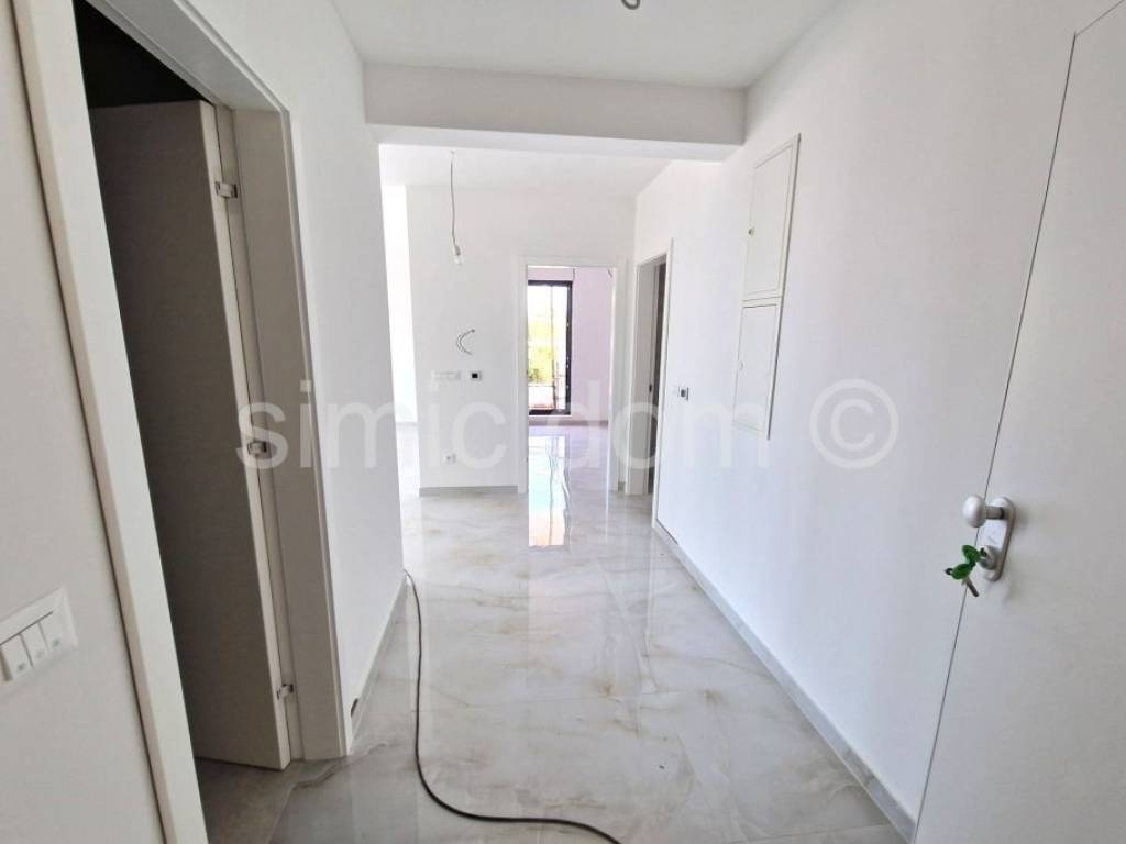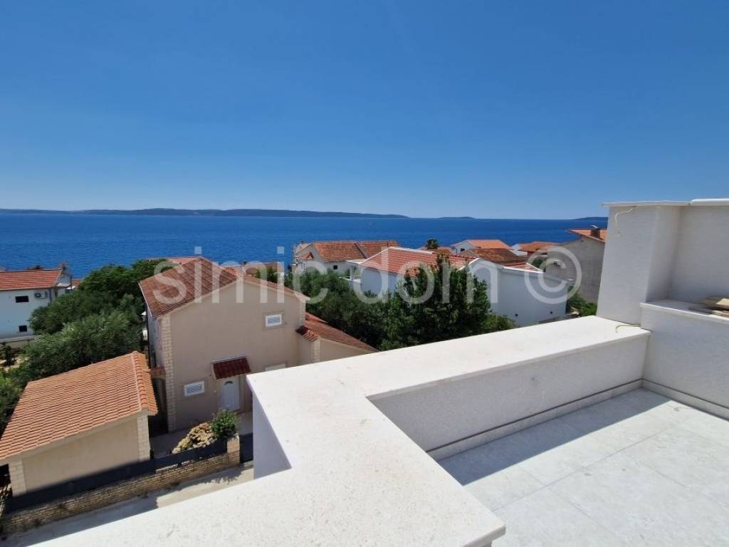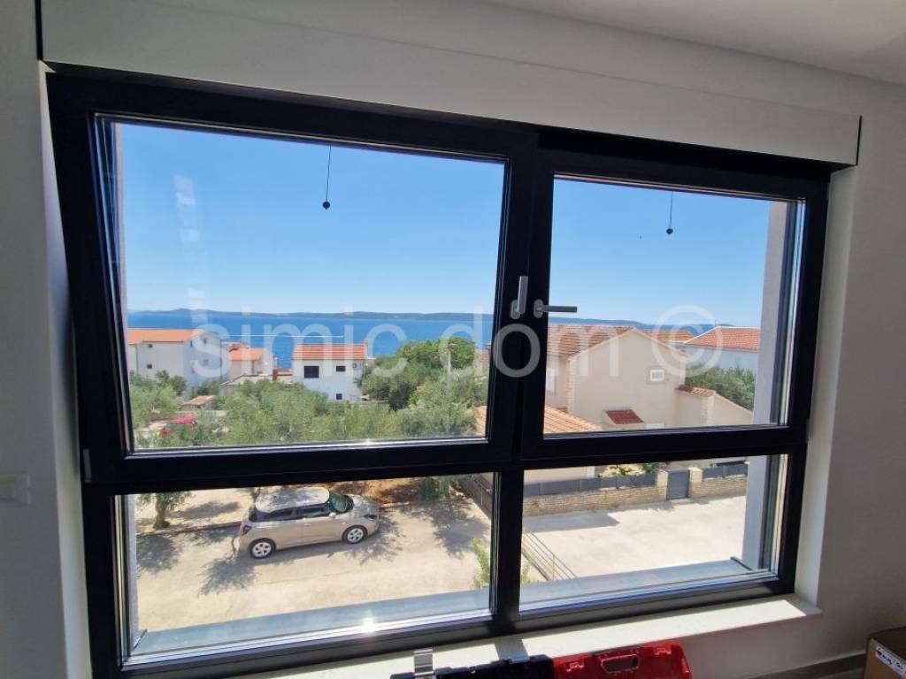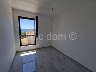 A top apartment for sale in a new building of extremely high quality and equipment, and in a prime location just 160m from the beach. Apartment S5 is placed on the second floor of a building with an elevator. The apartment has a total net area of approximately 114 m2 with all accessories and coefficients included. The interior area of the apartment is 73.50 m2, while there are two more large terraces, one at the apartment level with a floor area of 25.77 m2 and a roof terrace with a floor area of over 40 m2, a swimming pool of 24.68 m2 and a machine room, and it also has a garage space and a storage room, all included in the price. The apartment consists of a hallway, two bathrooms, two bedrooms, an open-concept kitchen with a dining room and a living room that has access to the terrace. The apartment offers a beautiful panoramic view of the sea and the surrounding area. The apartments are equipped with top-quality carpentry and ceramics and are ready for move-in in the summer of 2025. The location of the building is great for tenants who want to rent, but also for those who want to enjoy their own property, the view and the proximity to the beach.