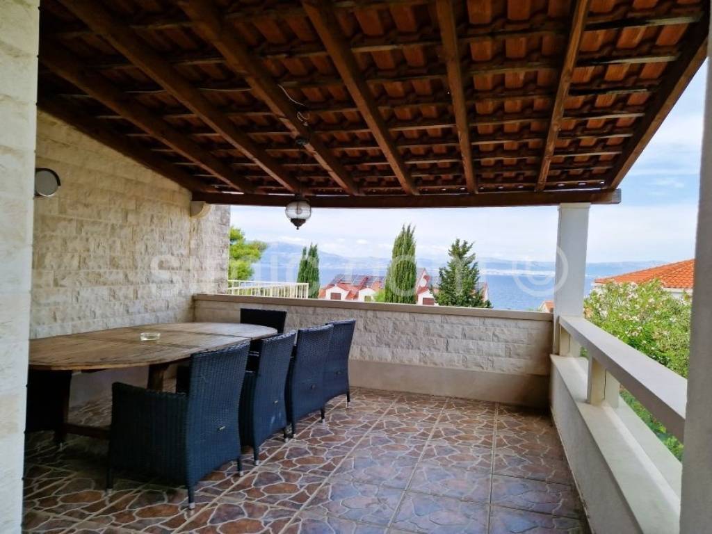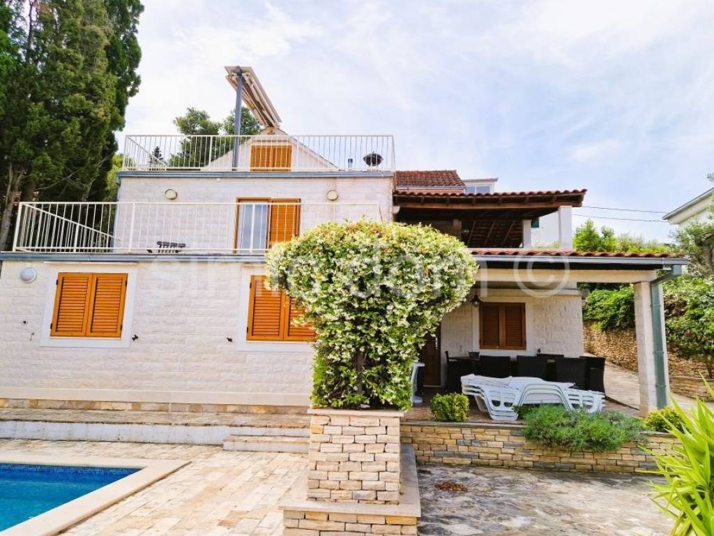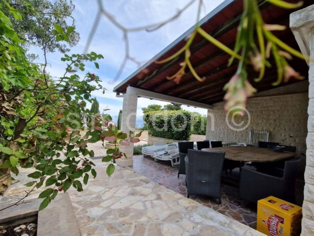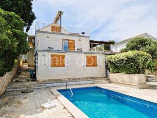 We mediate in the sale of a spacious family house in an attractive location on the island of Brac. The house is located in a quiet location and placed on a plot of 410 m2. It is spread over three floors (ground floor, first floor and attic) and has a total net area of 270.54 m2. It consists of three fully functional residential units - each floor is organized as an independent three-bedroom apartment. In total, the house has nine bedrooms and three bathrooms. The ground floor apartment (78.54 m2) and the attic apartment (81.49 m2) have one terrace each, while the first-floor apartment (110.51 m2) has two terraces. The house is surrounded by a landscaped and cultivated garden, and on the ground floor terrace there is a swimming pool and a space for sunbathing and socializing. The house is of older construction, but neat and habitable, ideal for a larger family or as an investment for tourist rental. Each floor has its own entrance, which further increases the rental potential. The excellent position allows quick access to the sea and all facilities, while the terraces and garden with a swimming pool offer an ideal space for relaxation and enjoyment of the Mediterranean lifestyle.