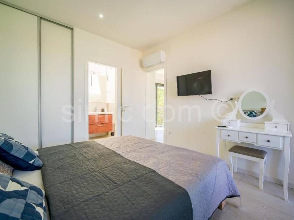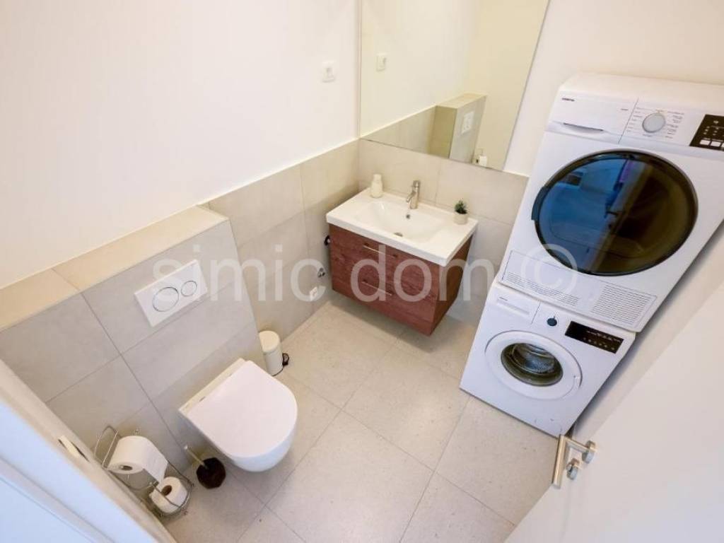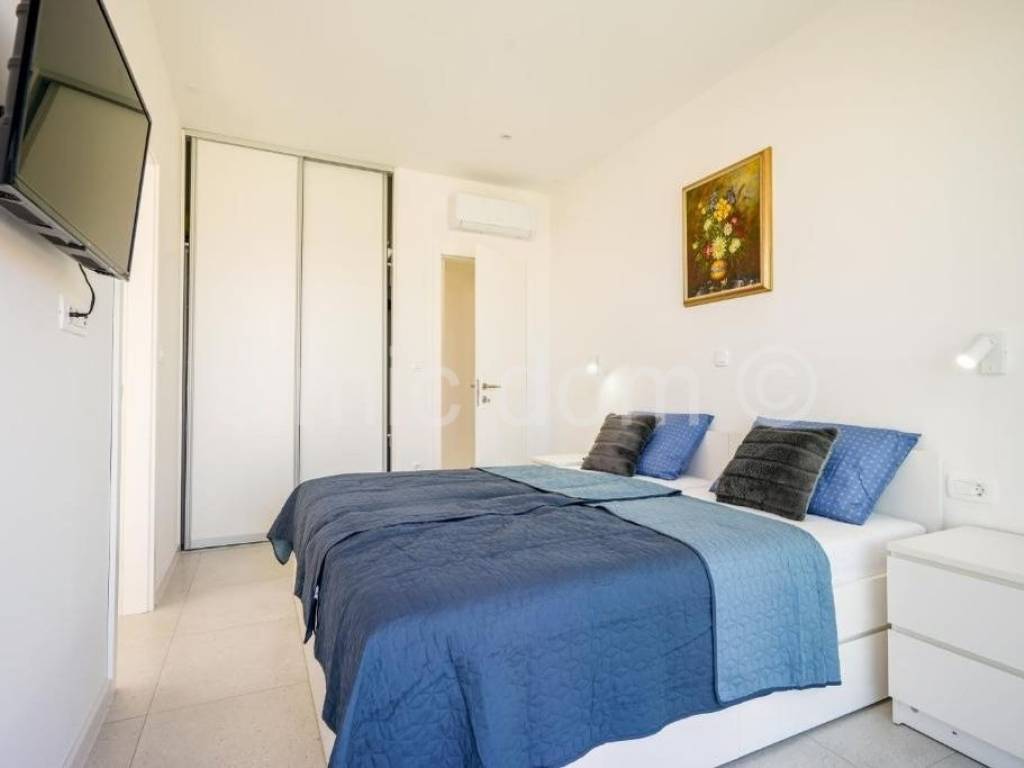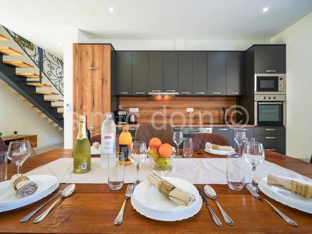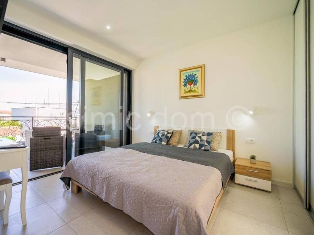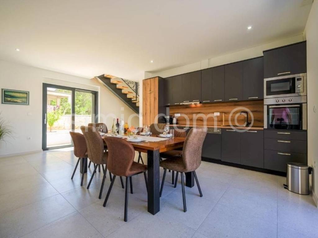 In the beautiful Murter, not even a minute's walk from the sea, there is this extremely beautifully designed detached villa for sale. The villa is located on a plot of 586 m2, the villa itself has a gross area of 280 m2 and consists of a ground floor and an upper floor. On the ground floor there is a large elegant entrance hall, a bathroom with a laundry room, a pantry, a hallway, an open-concept kitchen with a dining room and a living room. Internal stairs lead to the first floor where there are a total of four bedrooms, three of which have a large double bed and each room has its own bathroom. A terrace with a view of the sea and Murter stretches along the entire upper floor. The villa's courtyard is surrounded by a stone fence to ensure privacy. The villa is sold with all furniture and is equipped with solar hot water heating, an automatic pool management system, a motorized entrance gate with a car and parking for 3 cars. Each room is air-conditioned, and there is also a passage to the flat roof where external cooling units are located, while the bathrooms have underfloor heating. The house has video surveillance and the possibility of working as a "smart house". This excellent property near the sea is an ideal choice for a holiday home, as well as for living. Ownership in order.