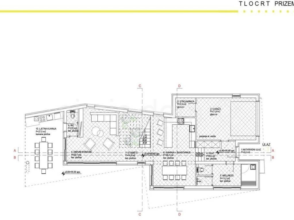 For sale is a villa under construction located in a quiet part of Primosten, 850m from the beach and the town center. The villa was built on a plot of approximately 570 m2, has a total net useful area of approximately 242 m2 and will be spread over two floors. There is a garage, engine room, wellness with toilet, additional guest toilet, kitchen with dining room and living room on the ground floor with access to a beautiful covered terrace with a summer kitchen, sitting area and sunbathing area by the pool. An internal staircase leads to the first floor which contains of four bedrooms, each with its own bathroom and a dressing room, a storage room and a hallway. The master bedroom offers access to a spacious, pergola-covered terrace of 22 m2. Quality materials and equipment are being used in the construction and furnishing of the villa: the living room and bathrooms will have underfloor heating via a heat pump; electric roller blinds, parquet/ceramic floors at the customer's choice in the price range according to the cost list, in the garage there will be charging stations for electric cars and the pool will be concrete heated. The yard will have secured parking for three cars. The possibility of changing materials and equipment at the customer's choice and with additional payment, depending on the possibility of adaptation and the stage of the works performed on the building. The planned completion date of the facility is July 2025.