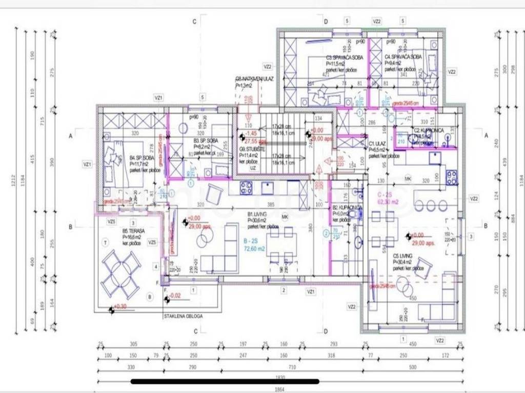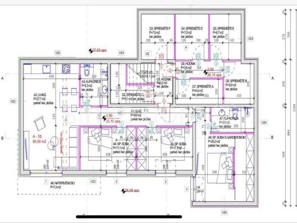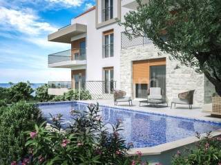 For sale are beautiful apartments in a new building near Rogoznica. The building is located in a great location, just a few minutes' walk to other amenities such as cafes and restaurants, and 180m from the beach. Apartment C is located on the first floor of a smaller building with a total of six residential units. It has a total net usable area of 70.47m2. It consists of an entrance hall, two bedrooms, a bathroom and a spacious living room with a dining room and a kitchen with access to a terrace from which there is a large 70m2 garden with a 27m2 swimming pool. The price of this apartment is 318000. The apartment also has two outdoor parking spaces that are included in the price. In the same building, there is another apartment for sale (marked A) with its own 29m2 pool located on the ground floor of the building. Apartment A is larger, has three bedrooms and has a total net usable area of 95 m2, and it also has a large garden of 140 m2. The price of apartment A is 418,000. This property is really an excellent investment if you want to have your own property, and since it is close to the sea it is great for a future tourist rental. The facility will be built according to the highest standards, with top-quality equipment, carpentry, ceramics and sanitary facilities. Energy efficiency meets the highest standards. The end of works and possibility of moving in is expected at the end of 2025.